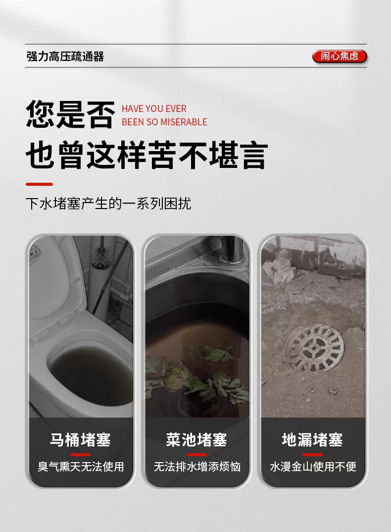 马桶疏通一炮通高压气通厕所下水道疏通堵塞专用工具强力疏通神器