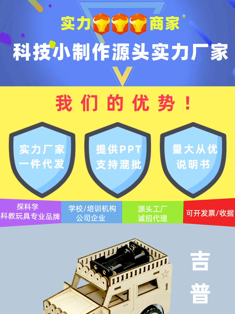 创意科技小制作小发明 玩具车DIY木制吉普车学生科学实验手工材料