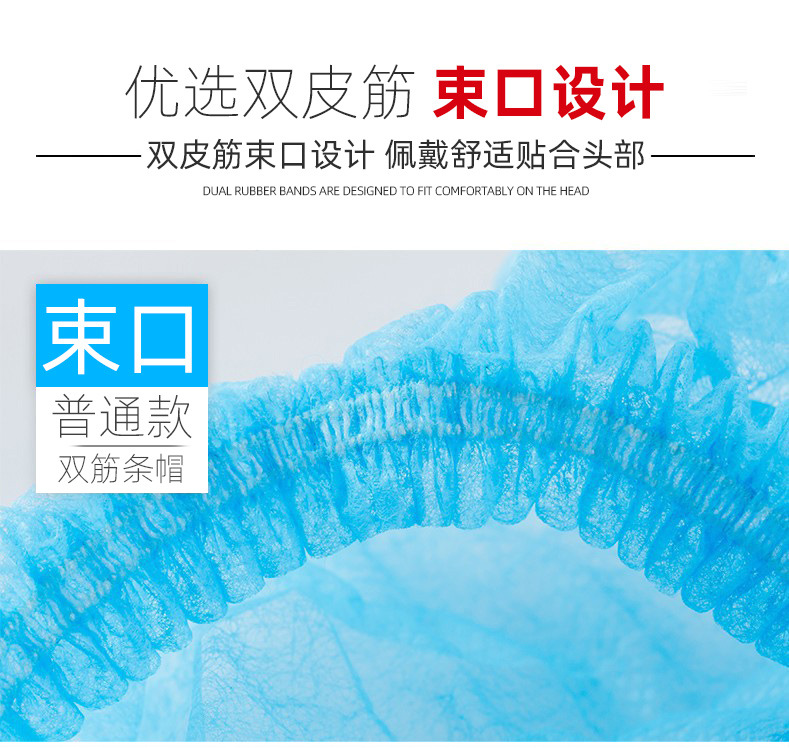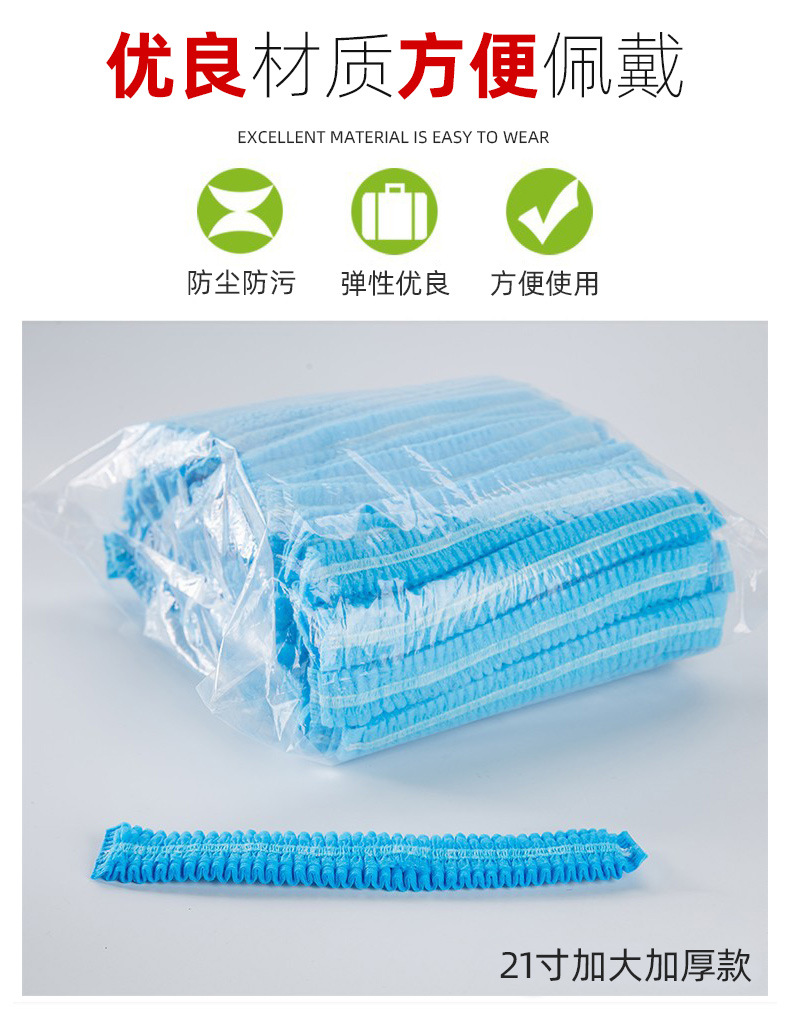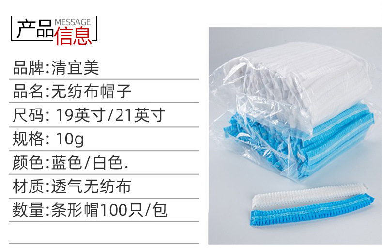 清宜美条形帽一次性加厚无纺布帽子通用食品长条防尘纯色浴帽头套