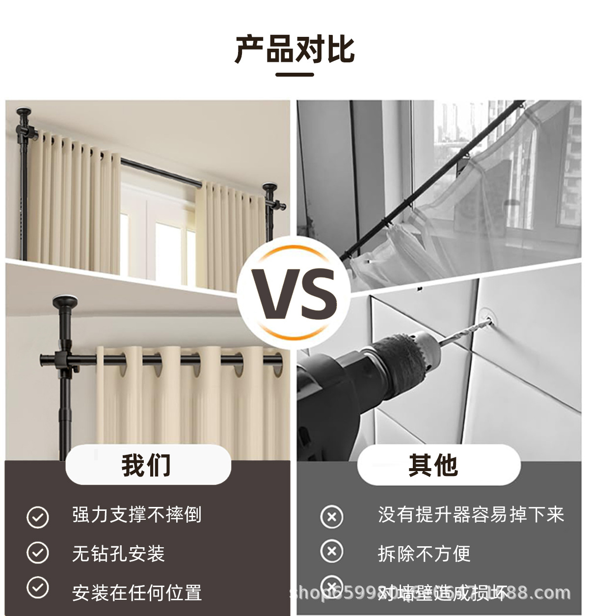 房间分隔窗帘杆垂直张力伸缩杆空间隔断卧室免打孔挡床隔断帘门帘