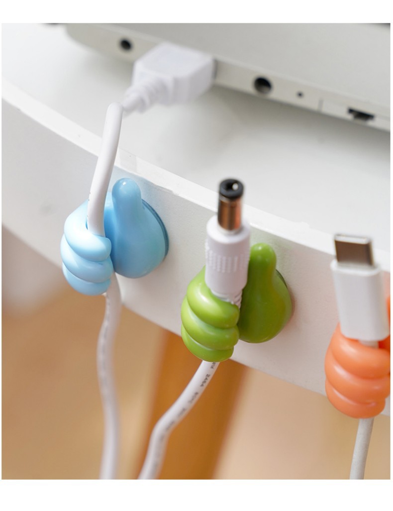 大拇指挂钩集线器创意可爱数据线收纳固定理线器无痕免打孔粘钩