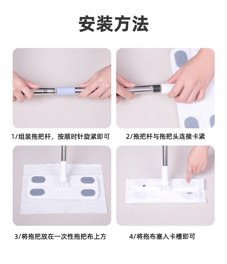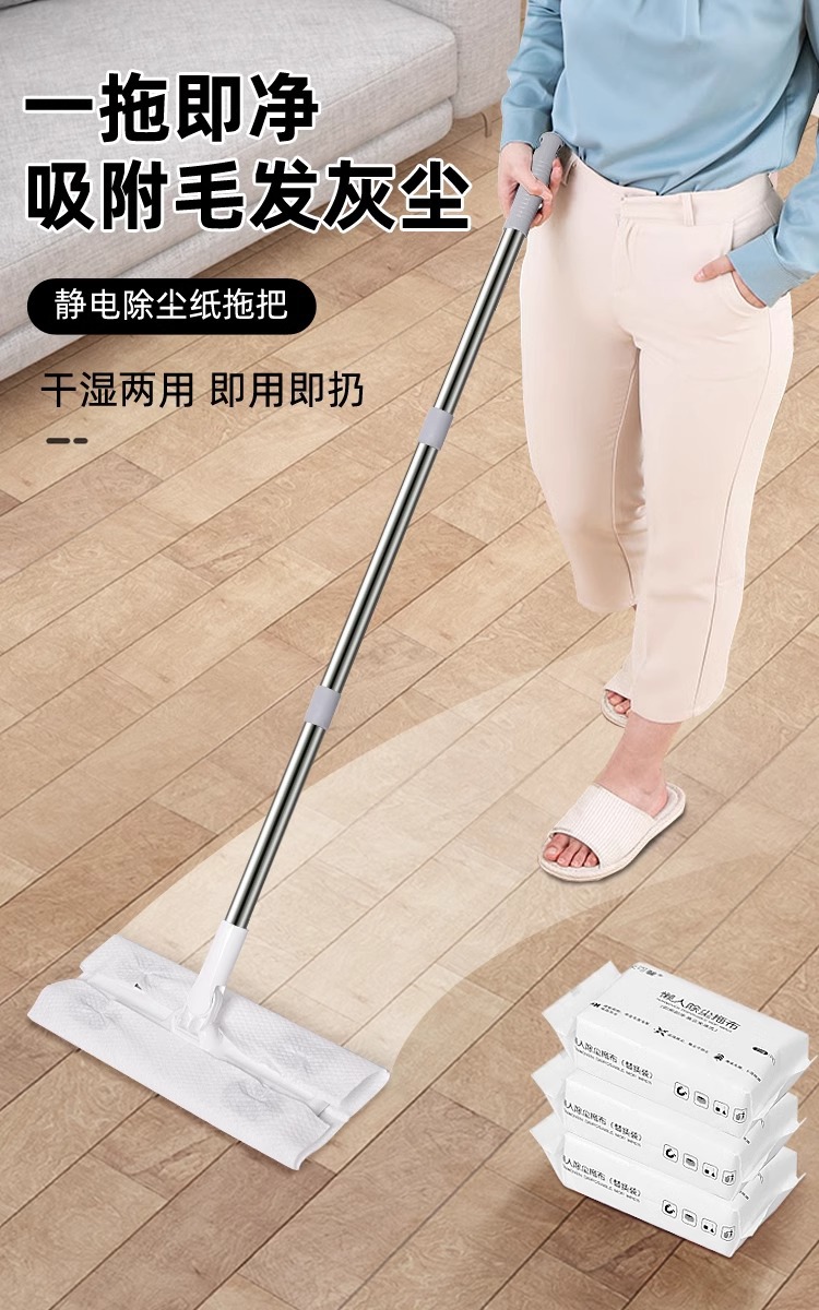 懒人拖把 静电除尘拖把 一拖净免手洗替换布静电除尘地拖平板拖把