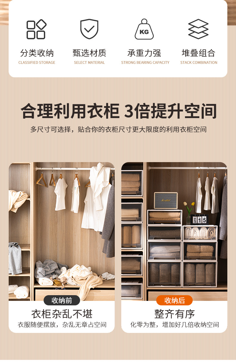 衣柜抽屉式收纳箱超大家用衣物收纳盒衣服储物箱免安装收纳抽屉