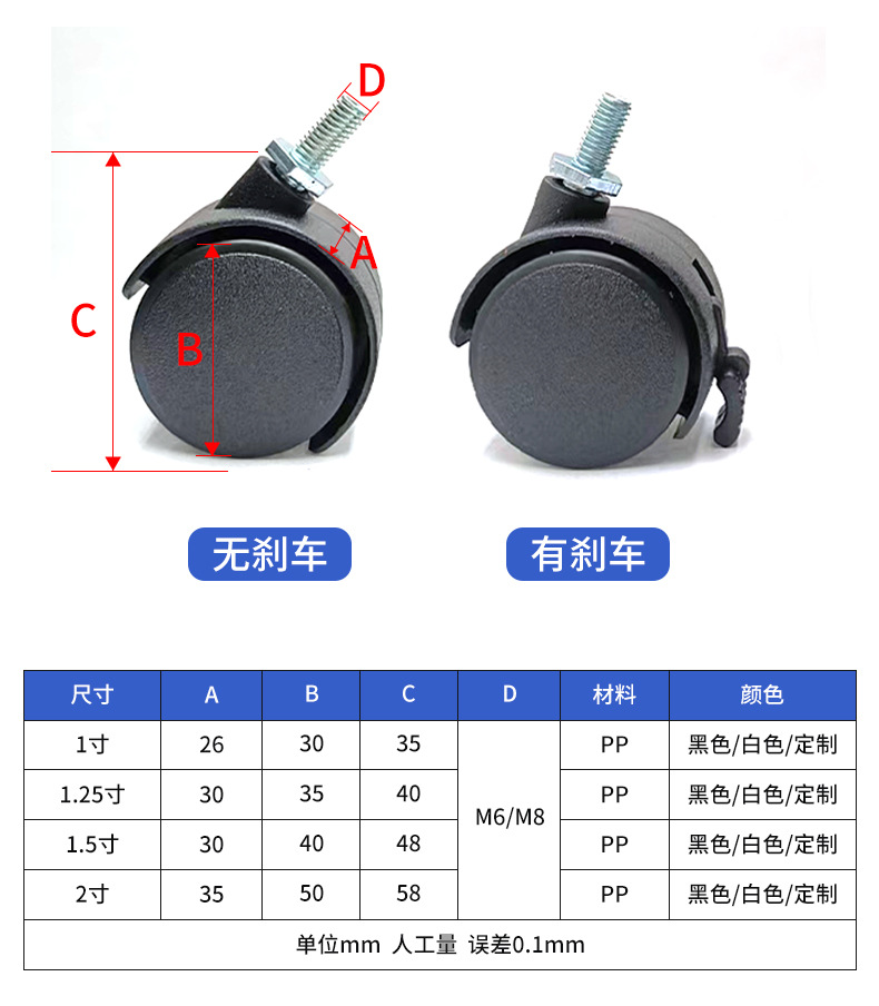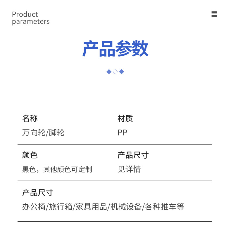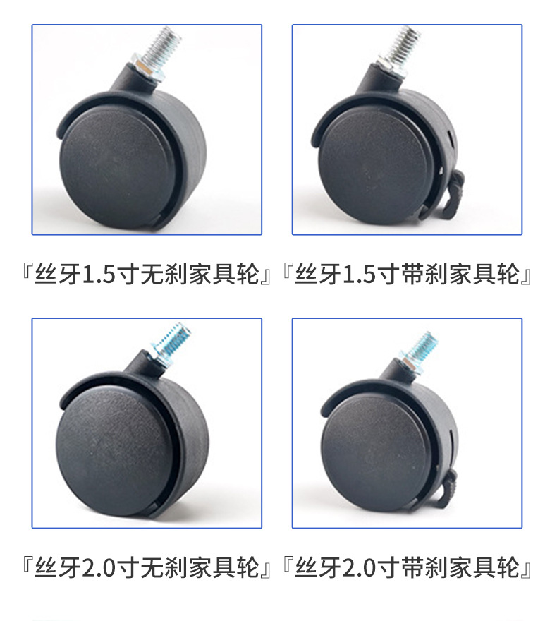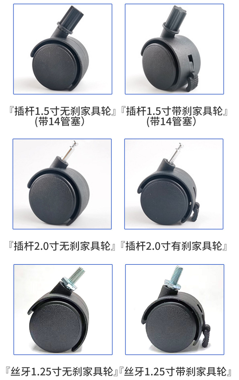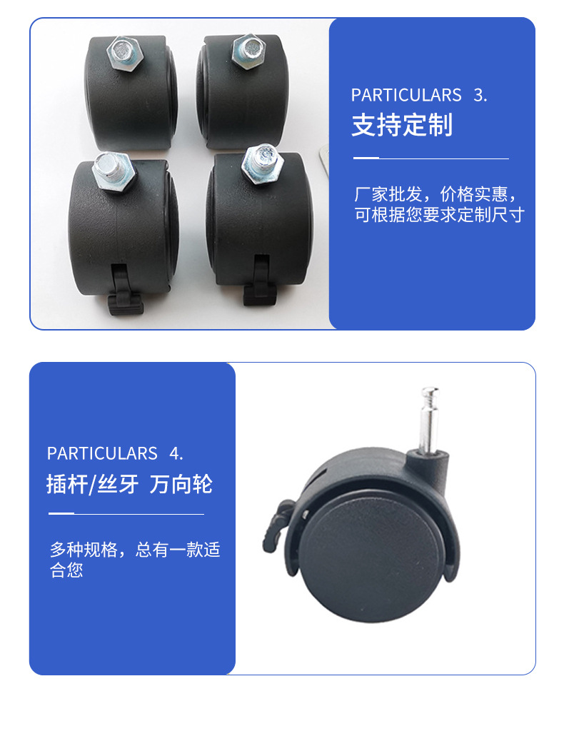 专供出口轮脚轮转椅轮子箱包家具小推车配件带脚轮塑料滚轮