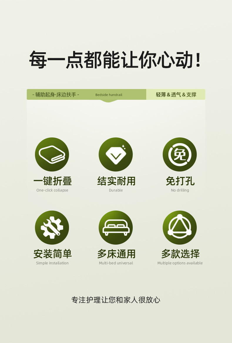 专供出口老人儿童床边围栏辅助防摔防掉床边扶手栏杆可折叠免打孔