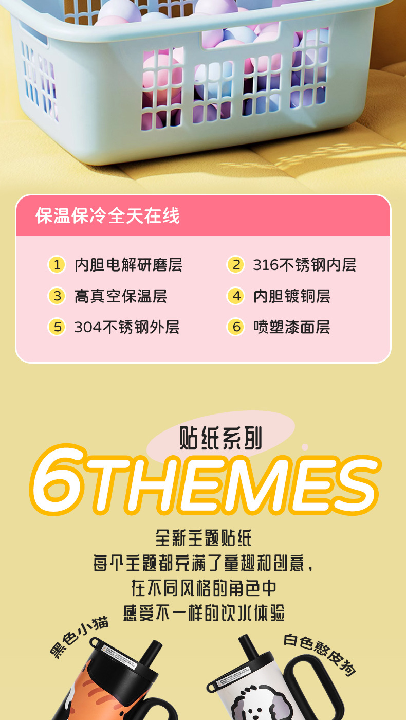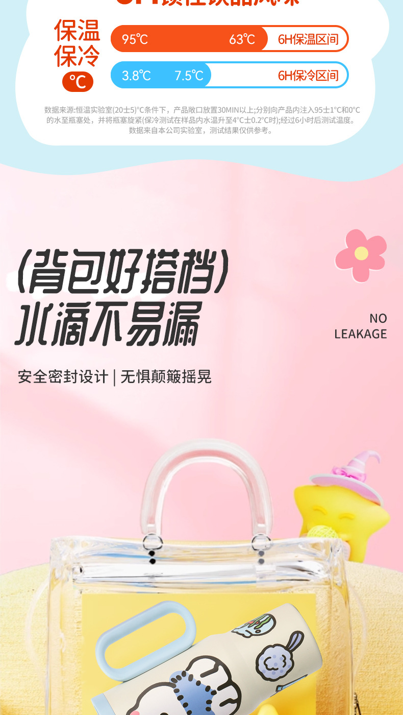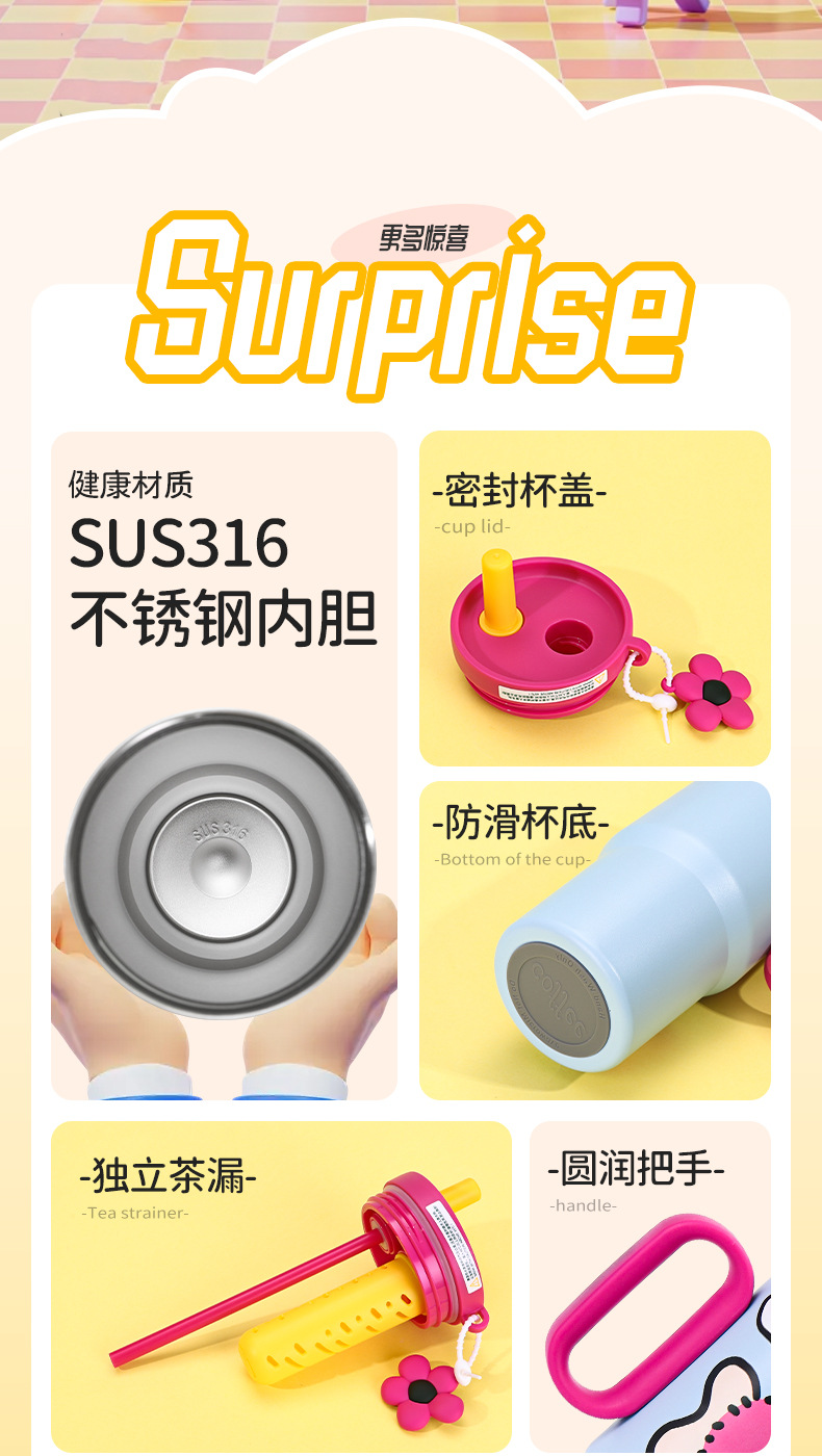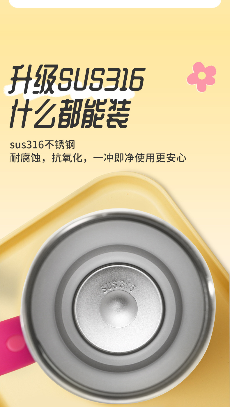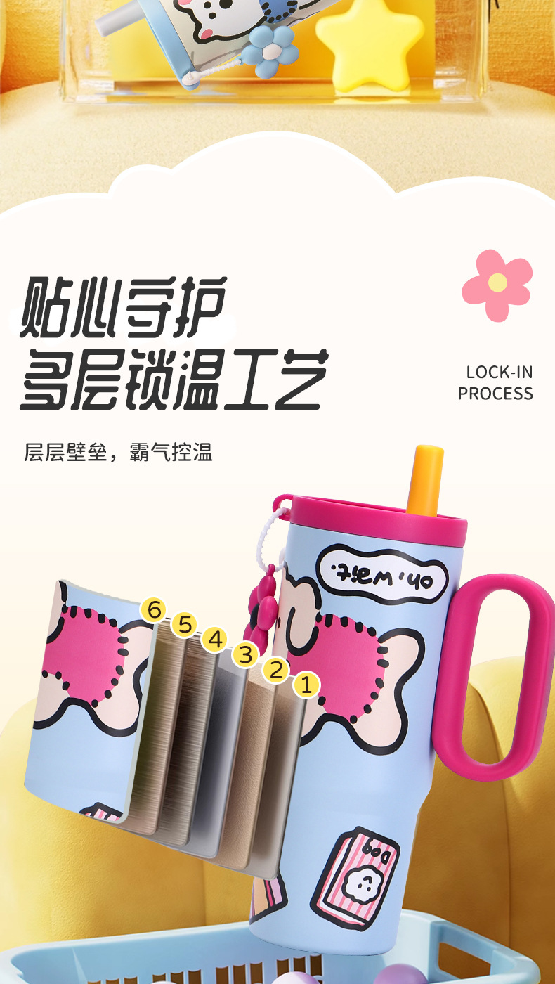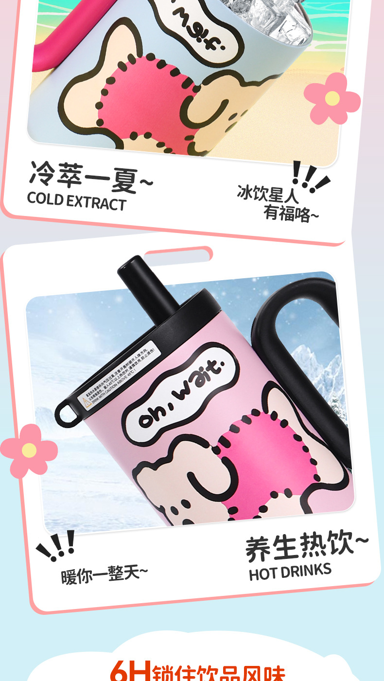 可爱猫狗316不锈钢保温杯女生高颜值保冷冰霸杯带手柄吸管汽车杯