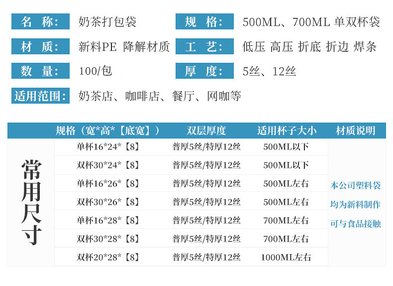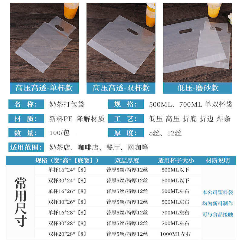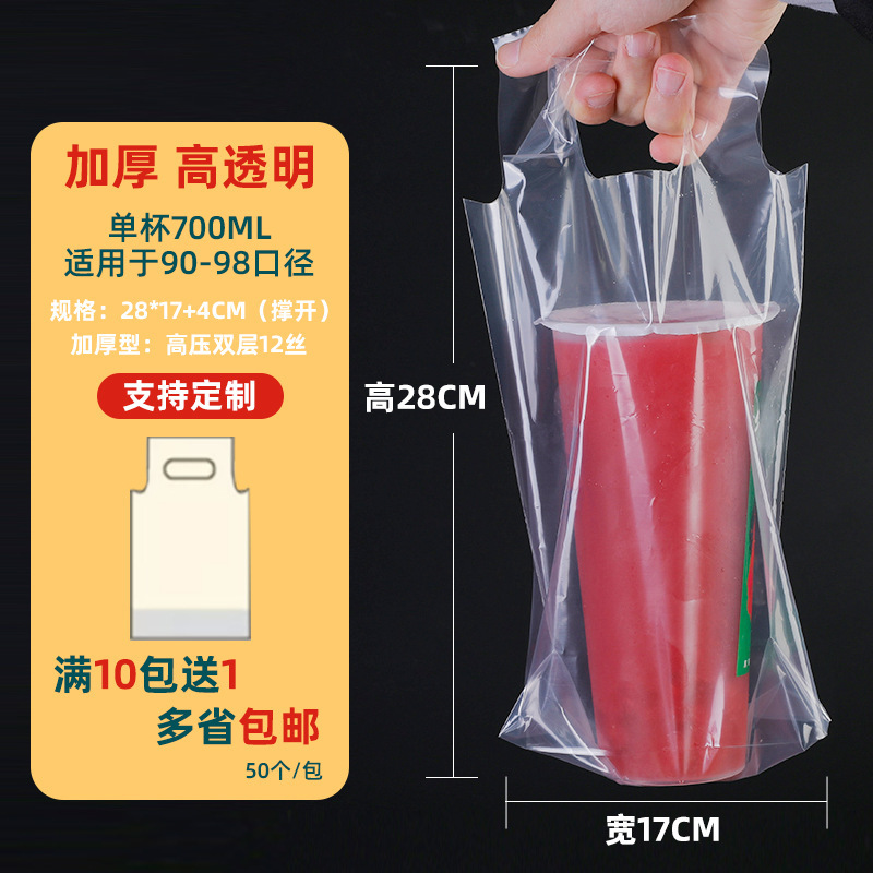 奶茶袋打包袋饮料单双杯袋一次性加厚手提外卖高透明塑料袋印Iogo