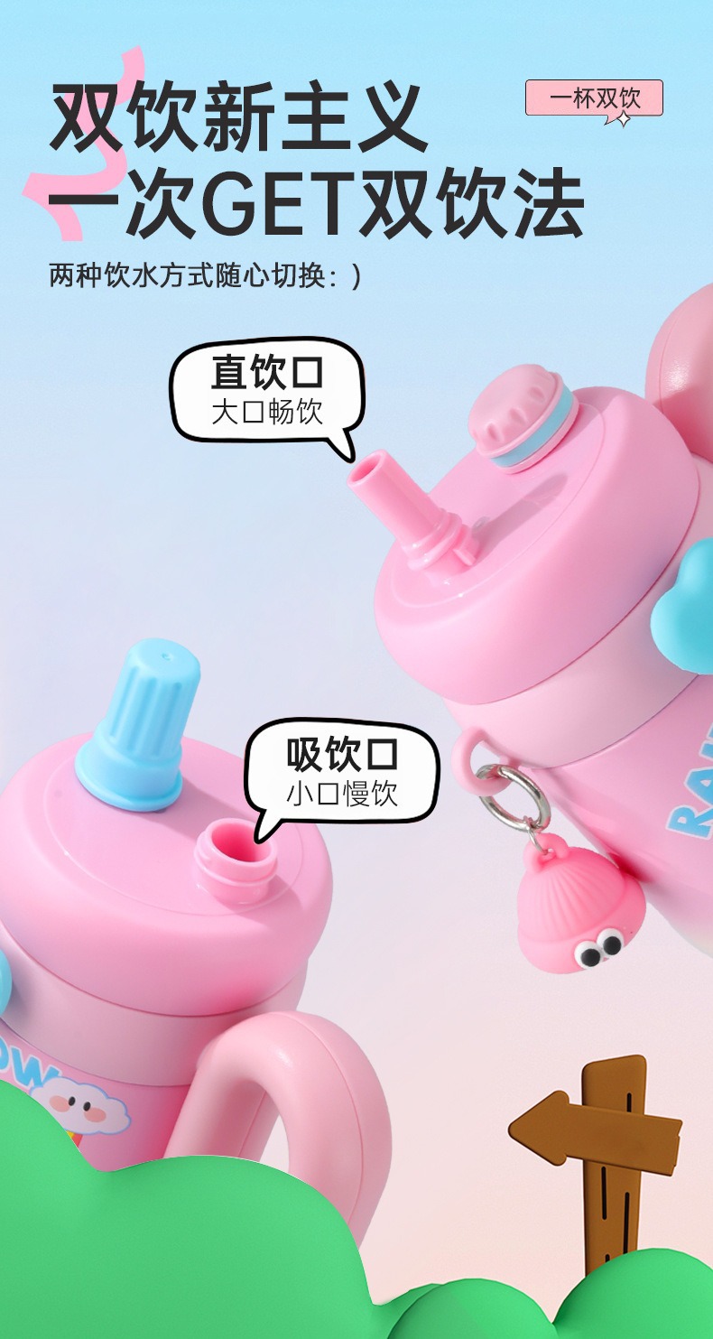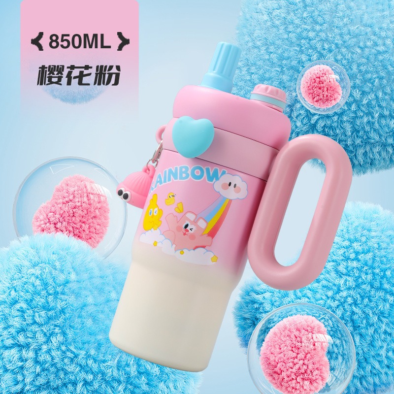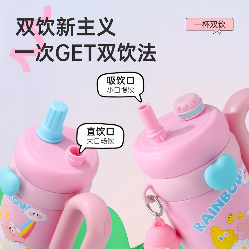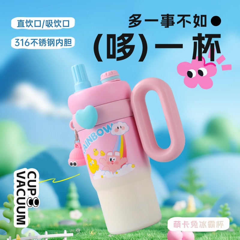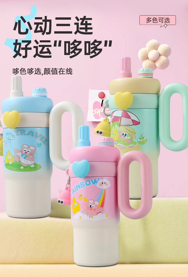 新款高颜值巨无霸吸管不锈钢保温水杯可爱卡通大容量带手柄可批发