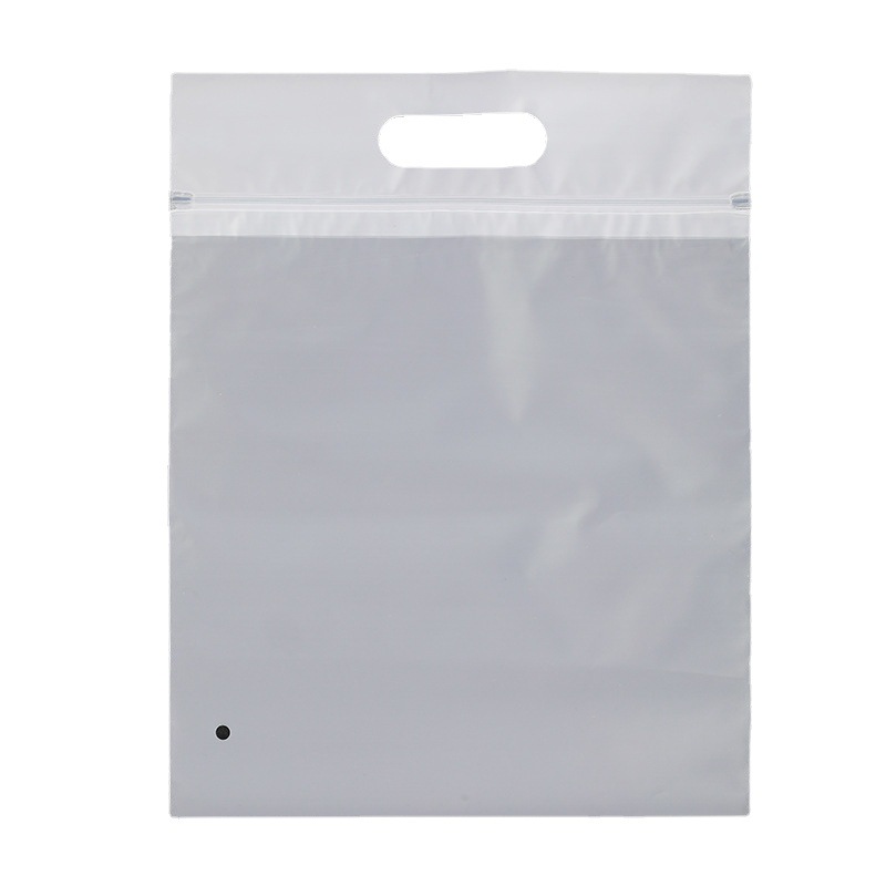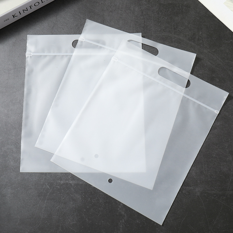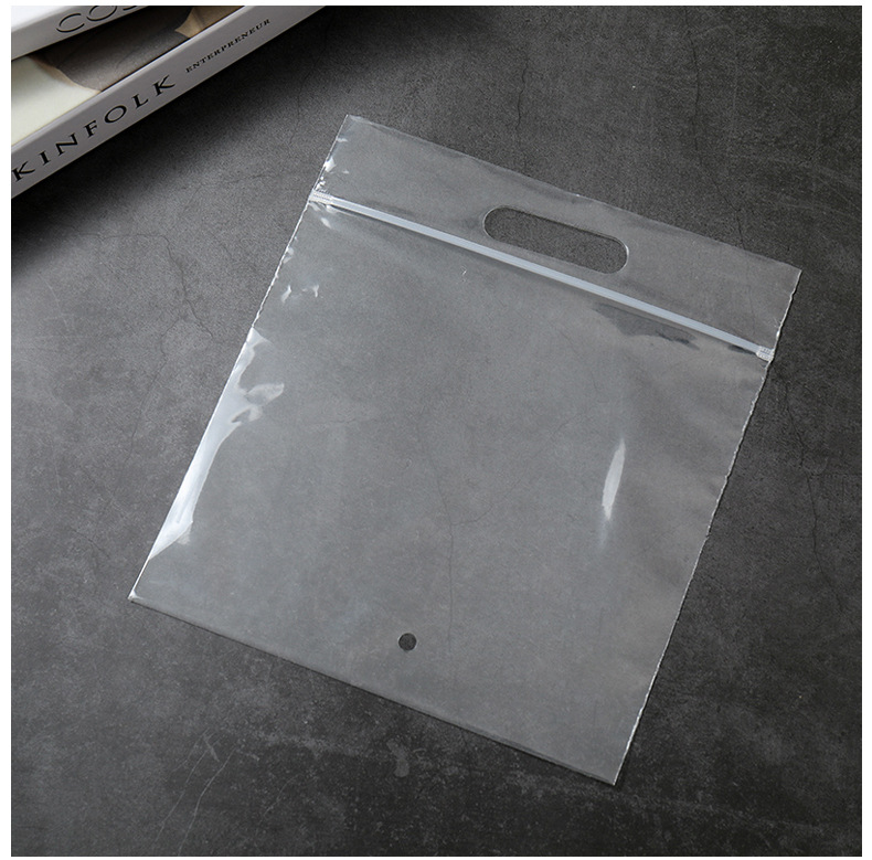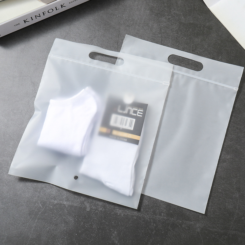 现货手提自封袋pe透明磨砂服装包装袋内衣袜子防尘手挽密封骨条袋