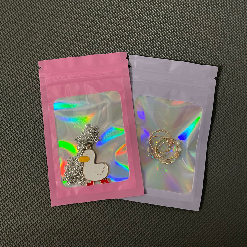 现货彩色窗口镭射自封袋饰品包装袋手机壳塑料袋食品密封袋定logo