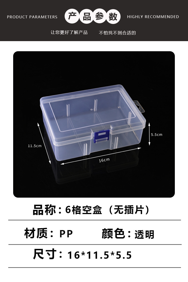 大号6格空盒透明塑料整理桌面元件分隔有盖小五金工具整理收纳盒