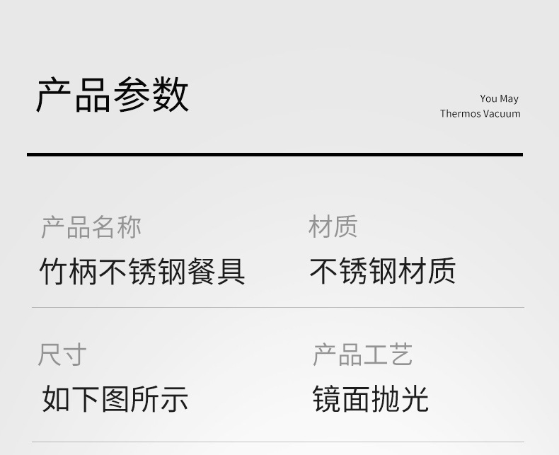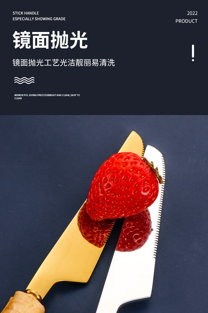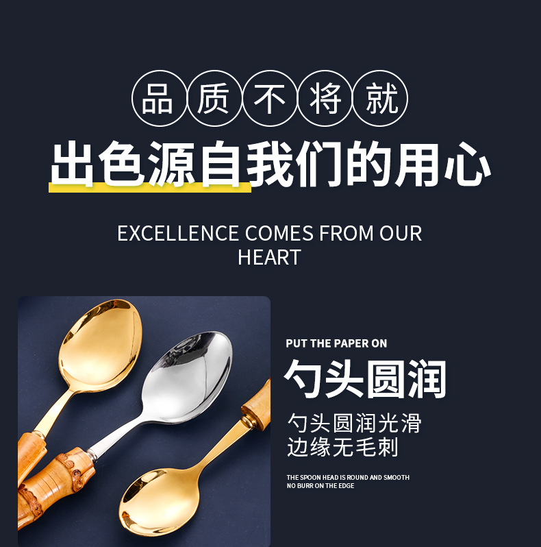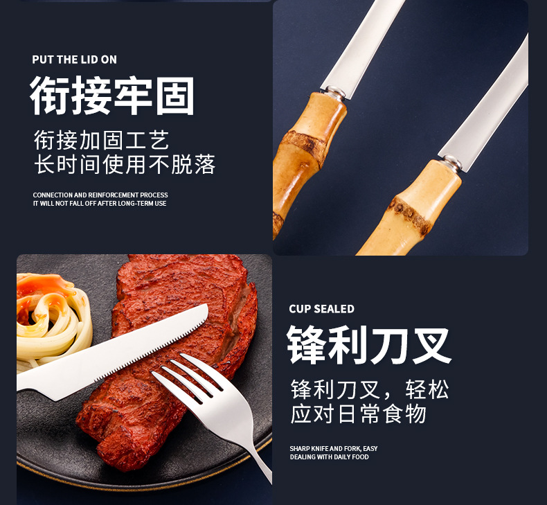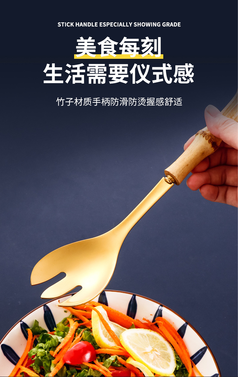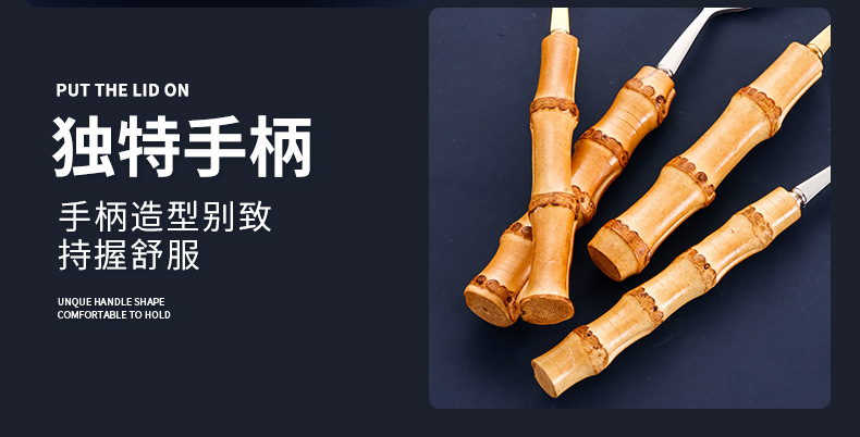 天然竹柄不锈钢餐具甜品沙拉勺叉茶勺竹节手柄西餐牛排刀叉勺套装
