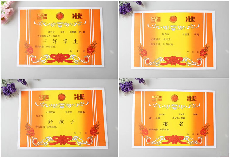 A4烫金幼儿园奖状带字8开空白奖状双胶纸奖励小学生奖状可打印
