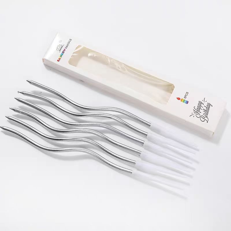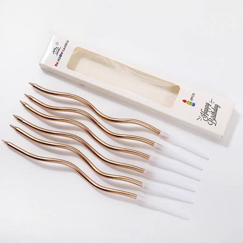 弯曲曲线生日蜡烛创意派对生日蛋糕螺旋状蜡烛装饰镀金金色蜡烛