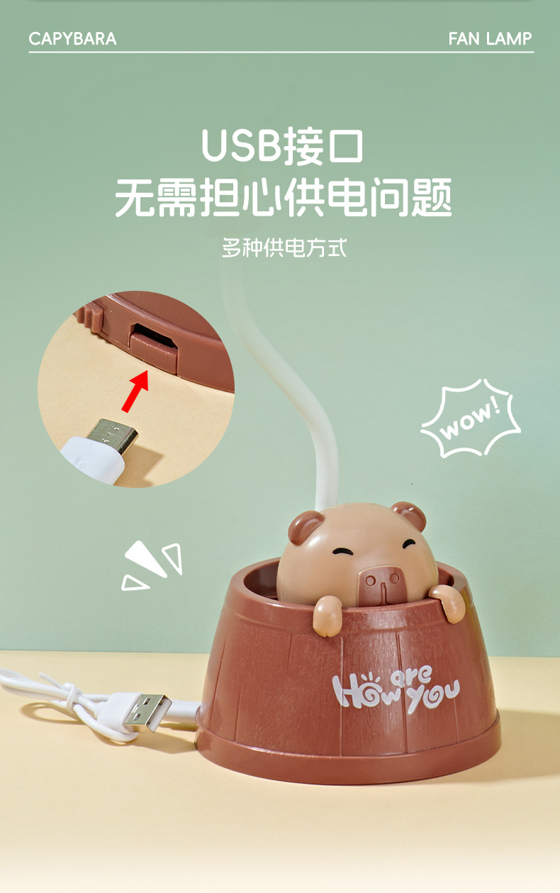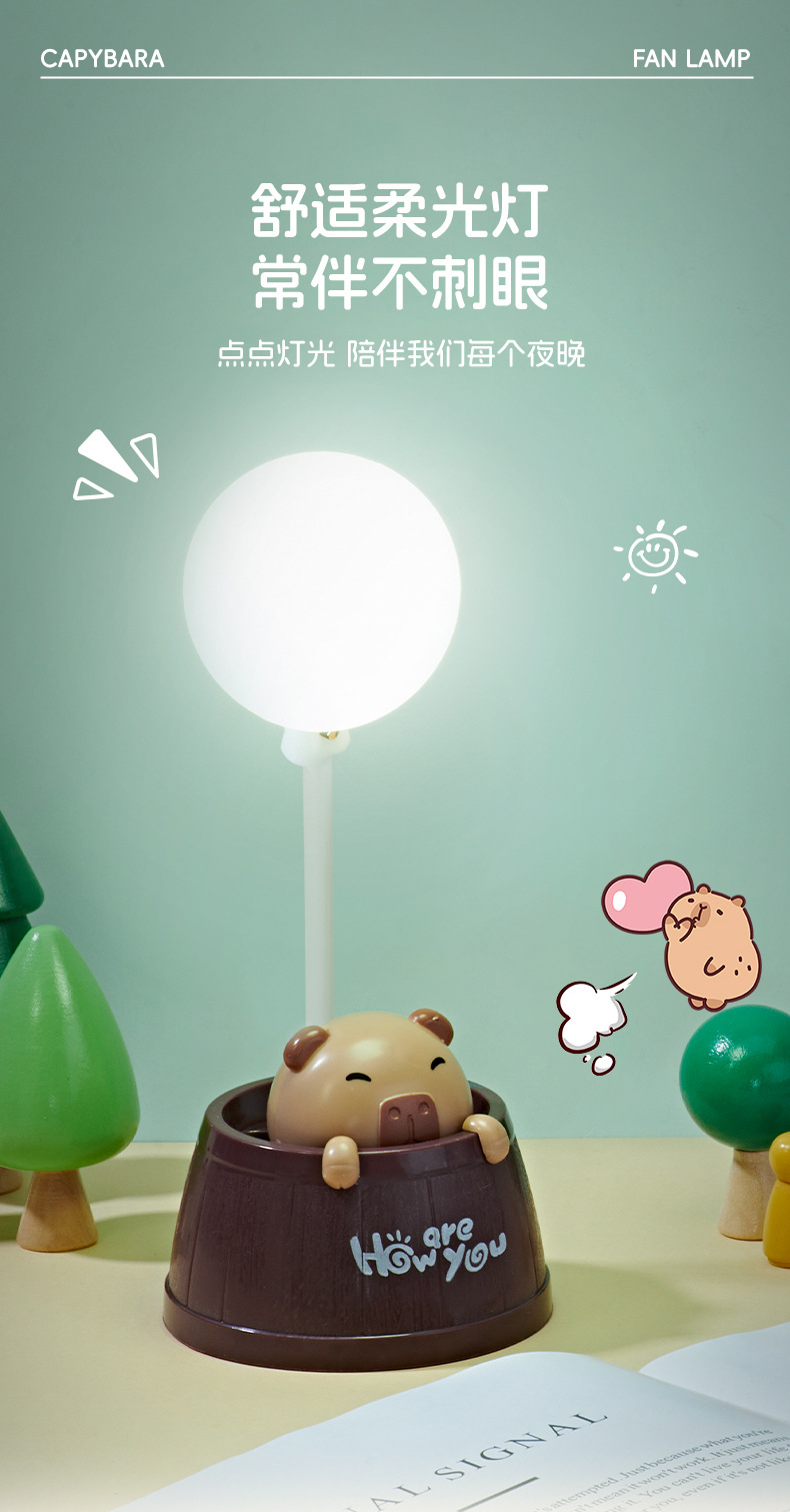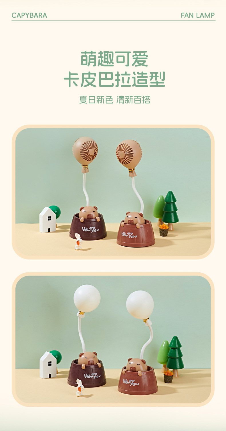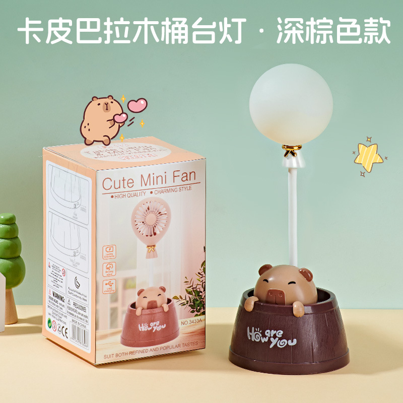 夏季新款卡皮巴拉桌面台灯风扇学生宿舍卧室夜灯小风扇可爱电风扇