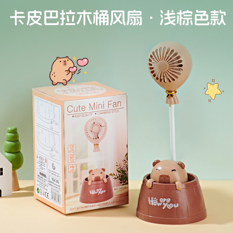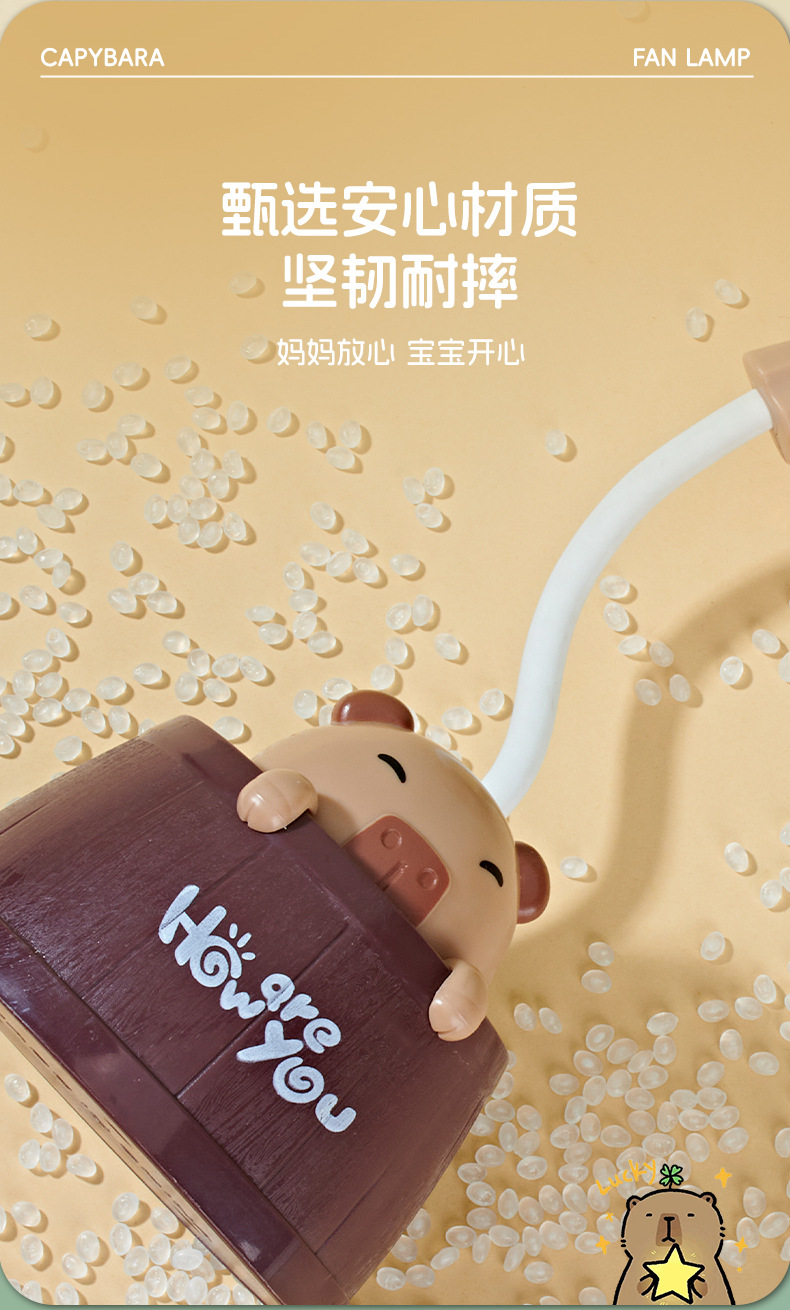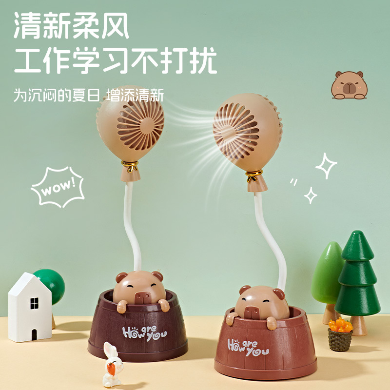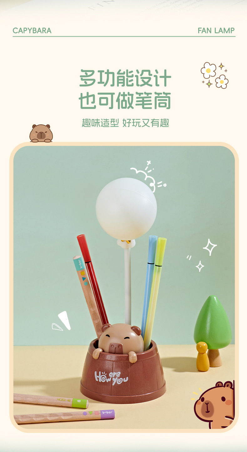 夏季新款卡皮巴拉桌面台灯风扇学生宿舍卧室夜灯小风扇可爱电风扇