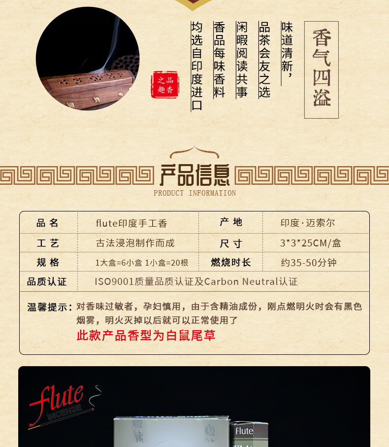 白鼠尾草线香 香座香氛 室内家用持久香薰进口印度熏香净化去味