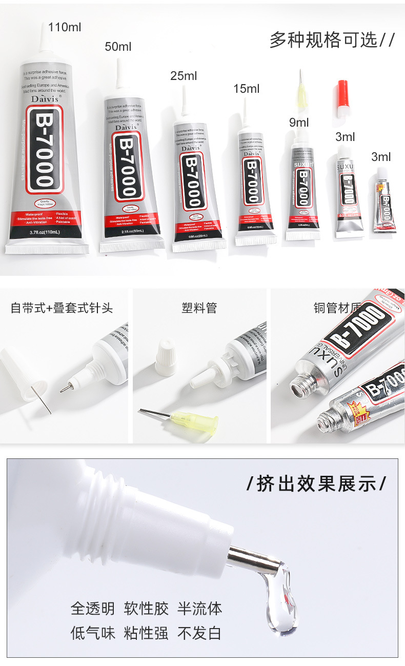 厂家b7000粘钻胶水牙膏胶手机壳diy饰品胶水屏幕维修手工贴钻胶水