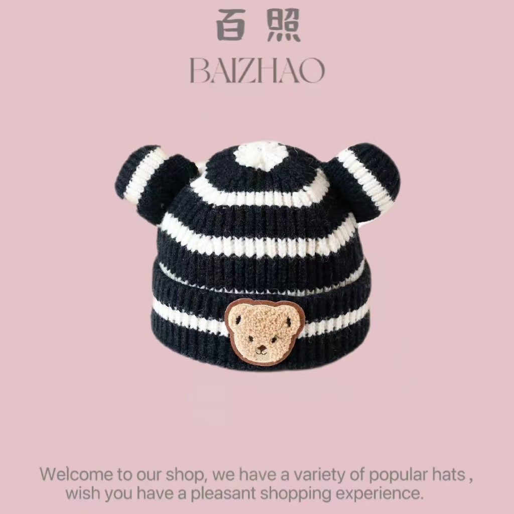 秋冬季儿童帽子韩国百搭男女童宝宝防风护耳针织帽子婴幼儿保暖帽