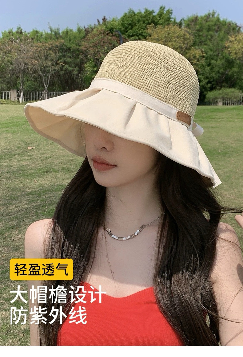 夏季新款遮阳草帽女全遮渔夫帽大檐太阳帽遮脸骑车防晒帽户外帽子