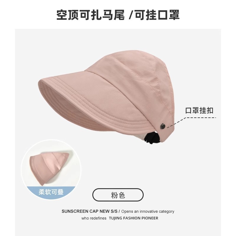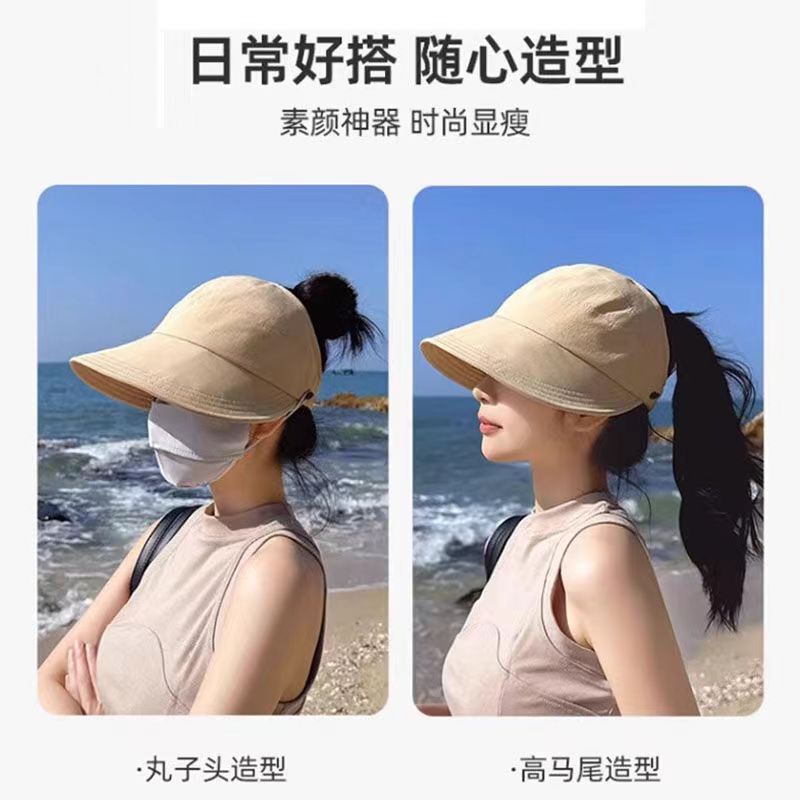 春夏季遮阳帽子女户外防紫外线速干防晒帽半空顶鸭舌帽太阳渔夫帽