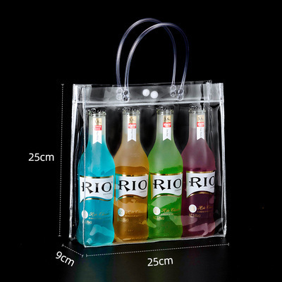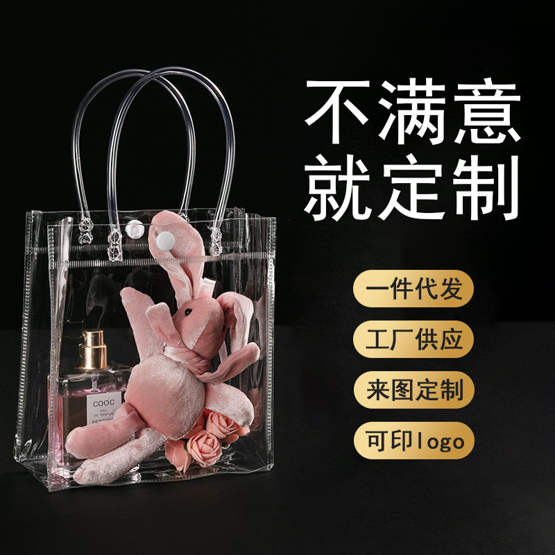 现货塑料pvc手提袋透明礼品包装袋奶茶伴手礼喜糖手提pvc包装袋