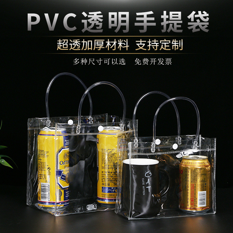 PVC透明手提袋 厂家直供礼品伴手礼奶茶打包防水塑料手 提手拎袋