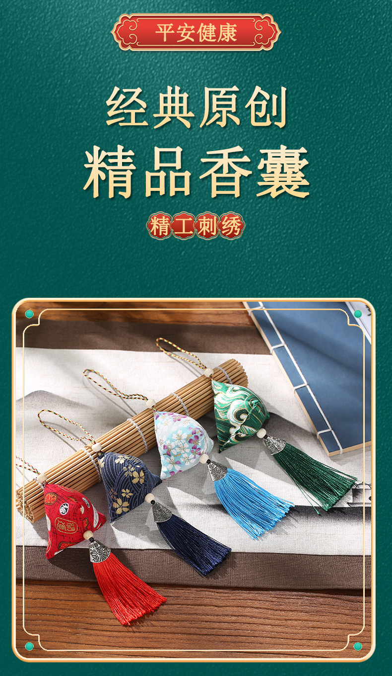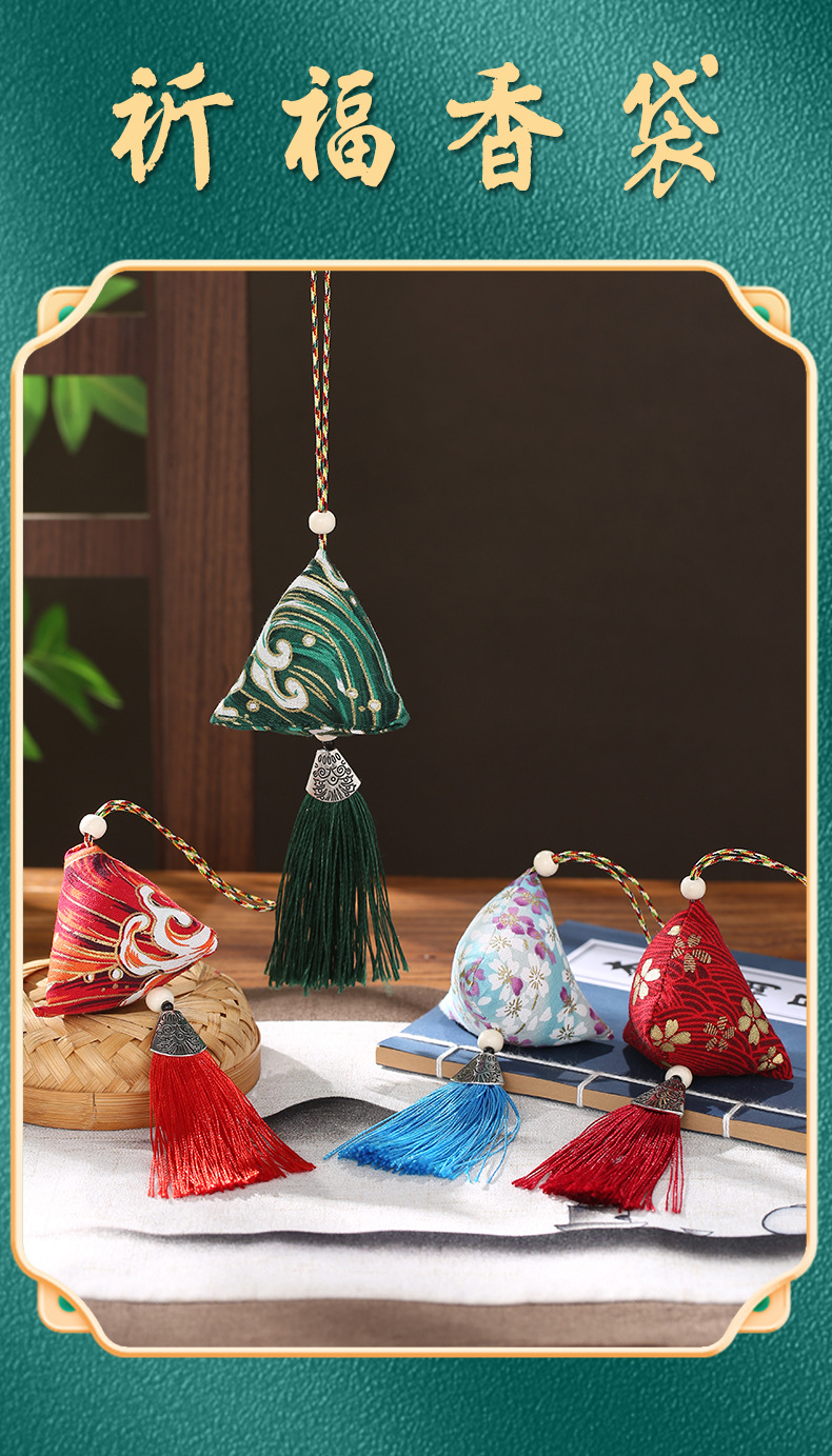端午香囊艾草三角粽子香包香囊手工缝制刺绣随身挂件平安符护身符