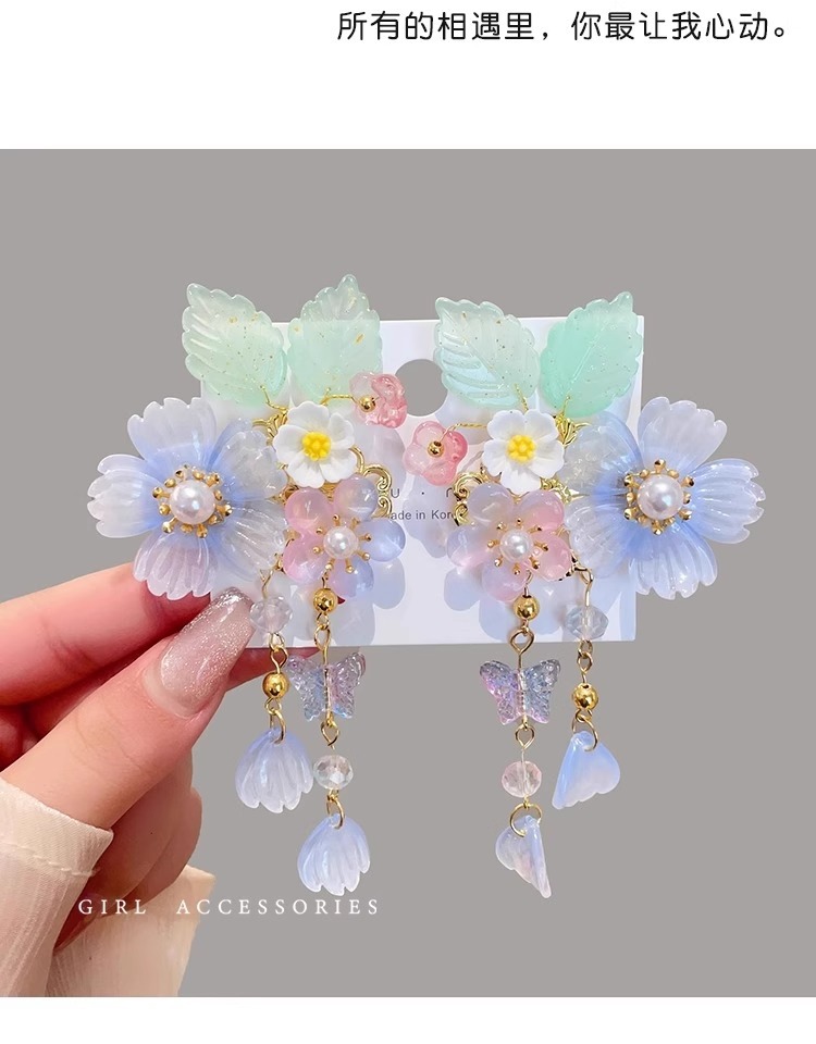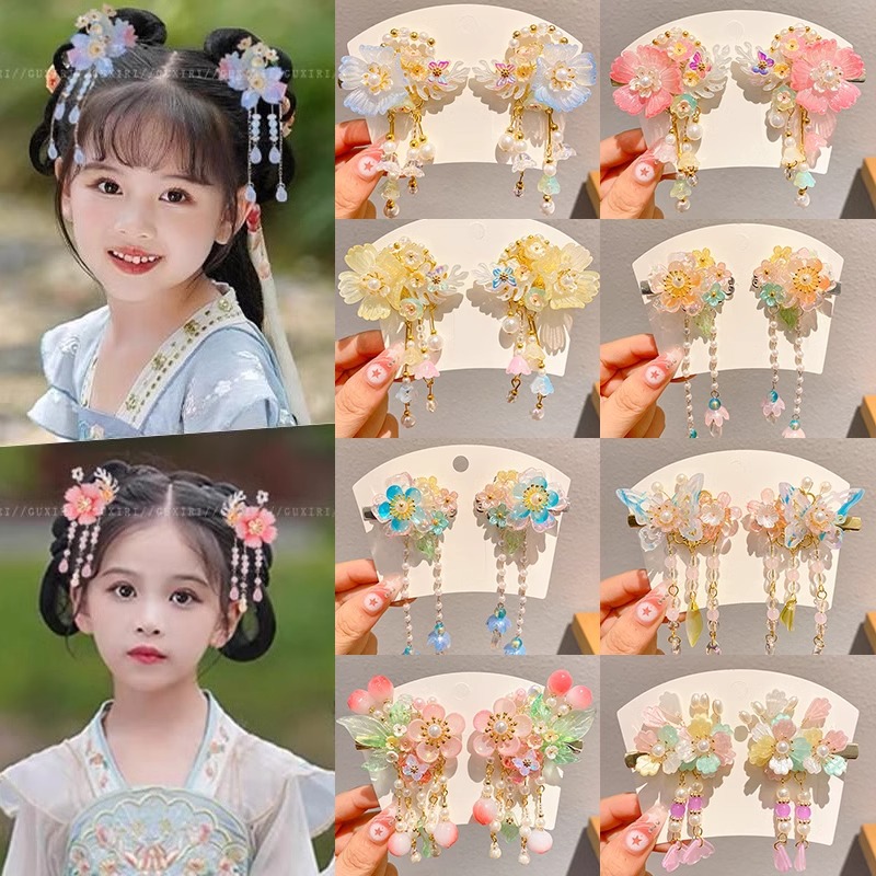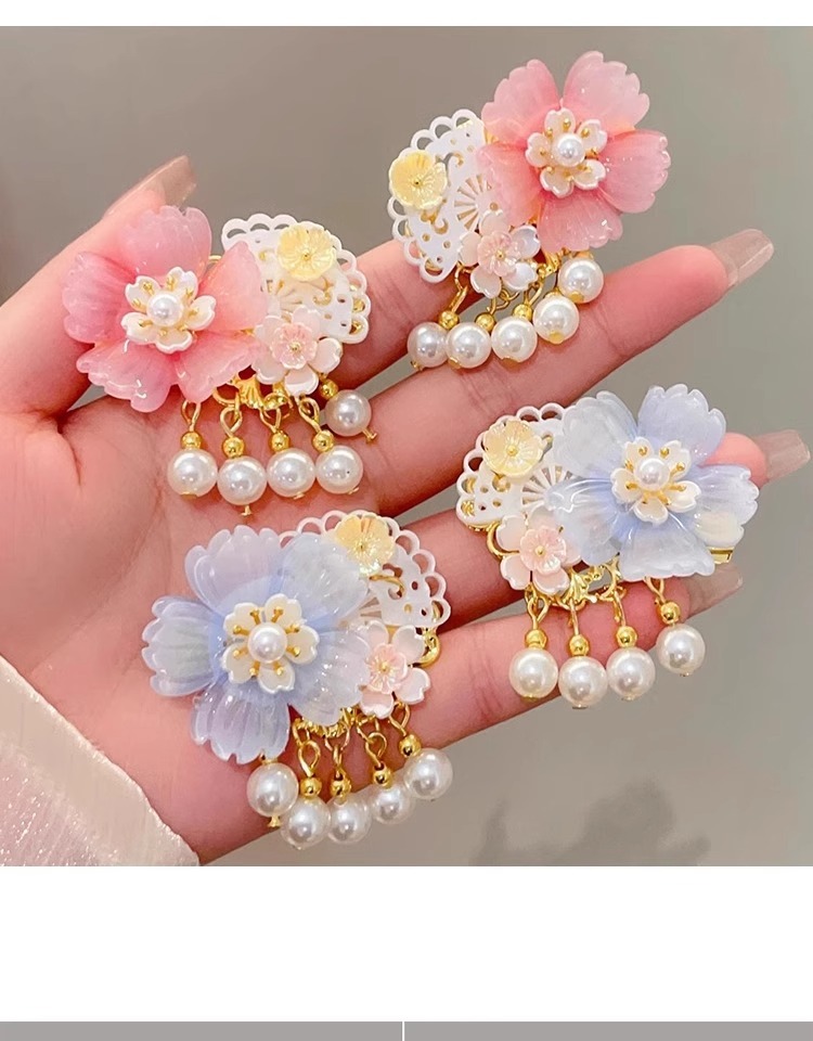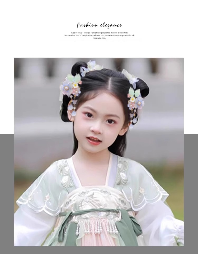 古风汉服发饰女儿童超仙公主发夹女童中国风花朵流苏发卡古装头饰