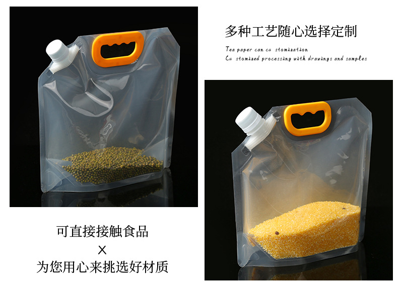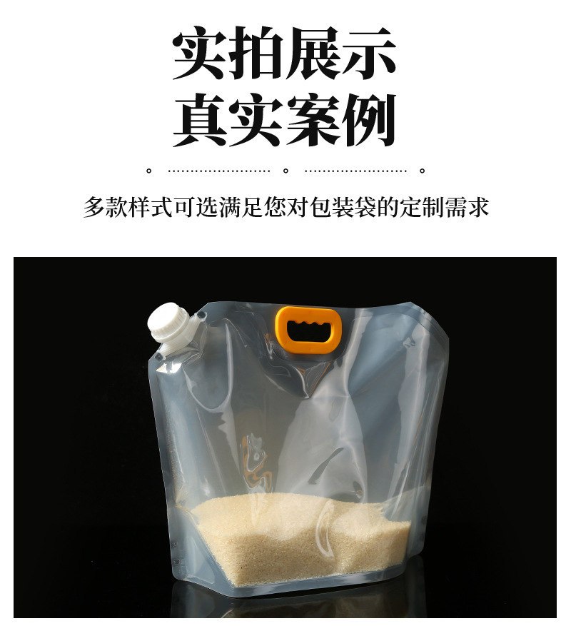 现货果汁饮料啤酒包装袋手提透明五谷杂粮收纳袋510斤大米吸嘴袋