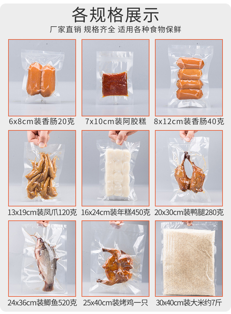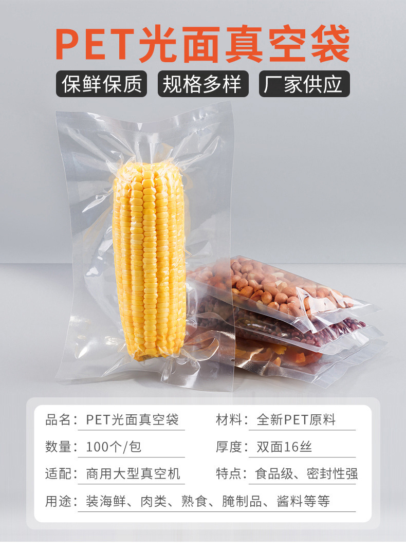 食品聚酯真空袋食品袋保鲜食物光面压缩袋抽真空食品级真空包装袋