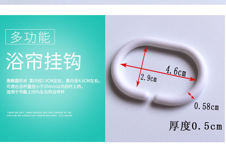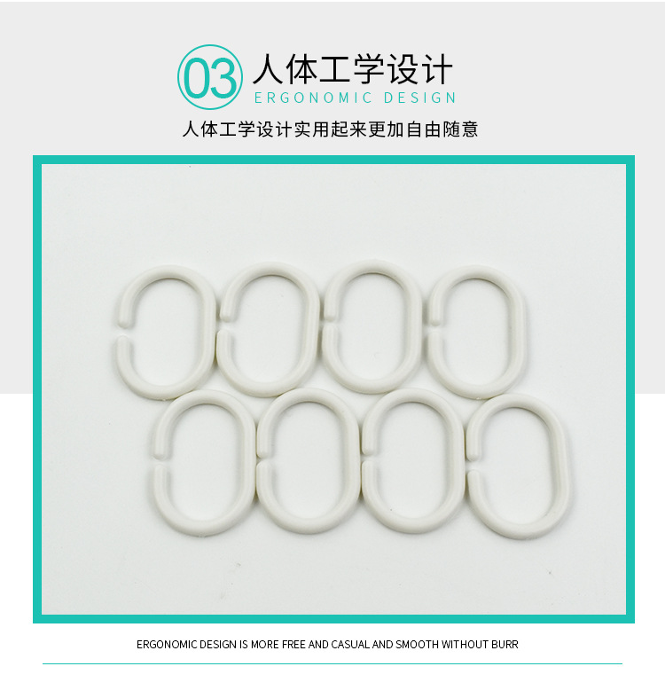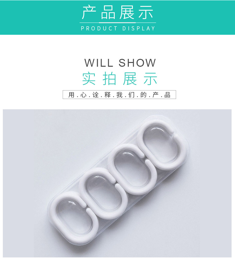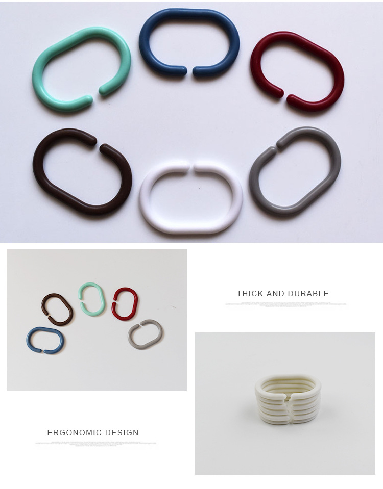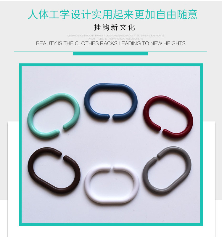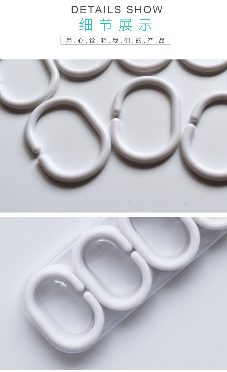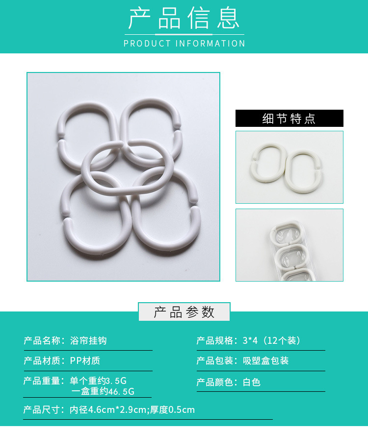 创意塑料床帘配件 浴帘挂钩加厚窗帘浴室挂环C型环钩窗帘扣12个装