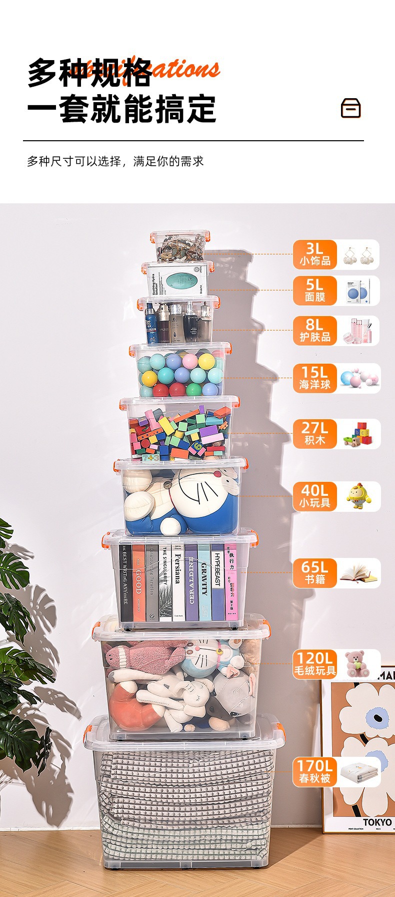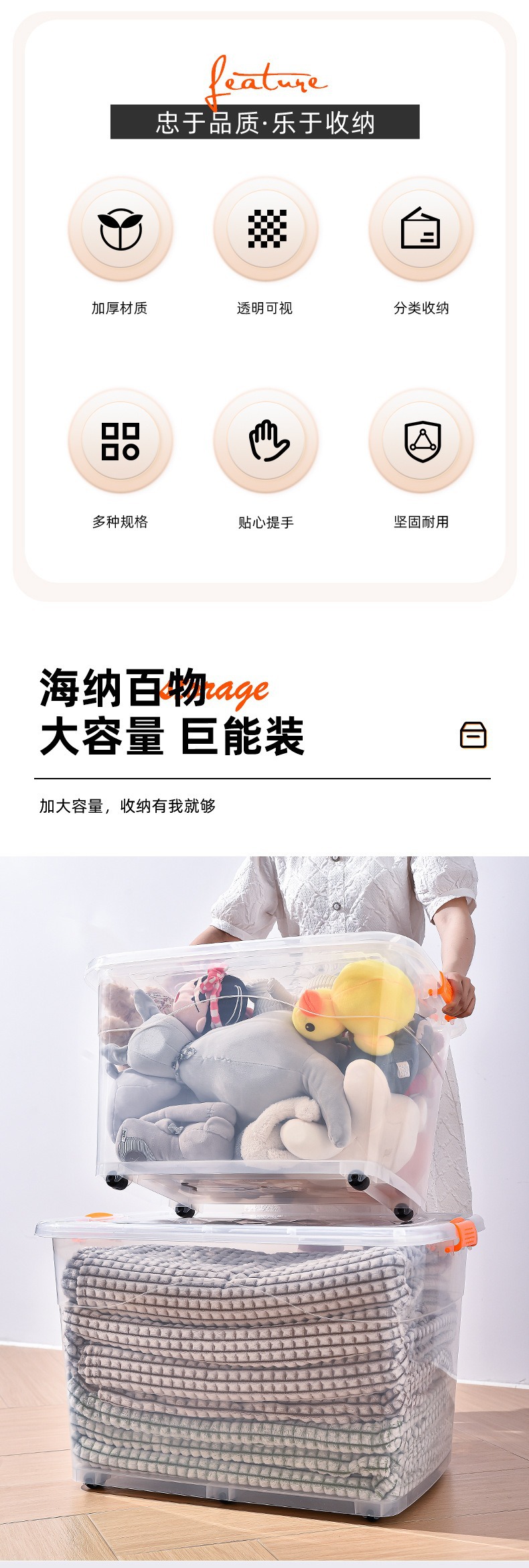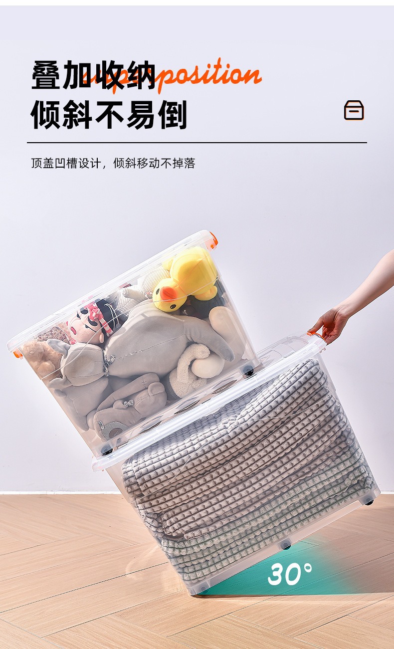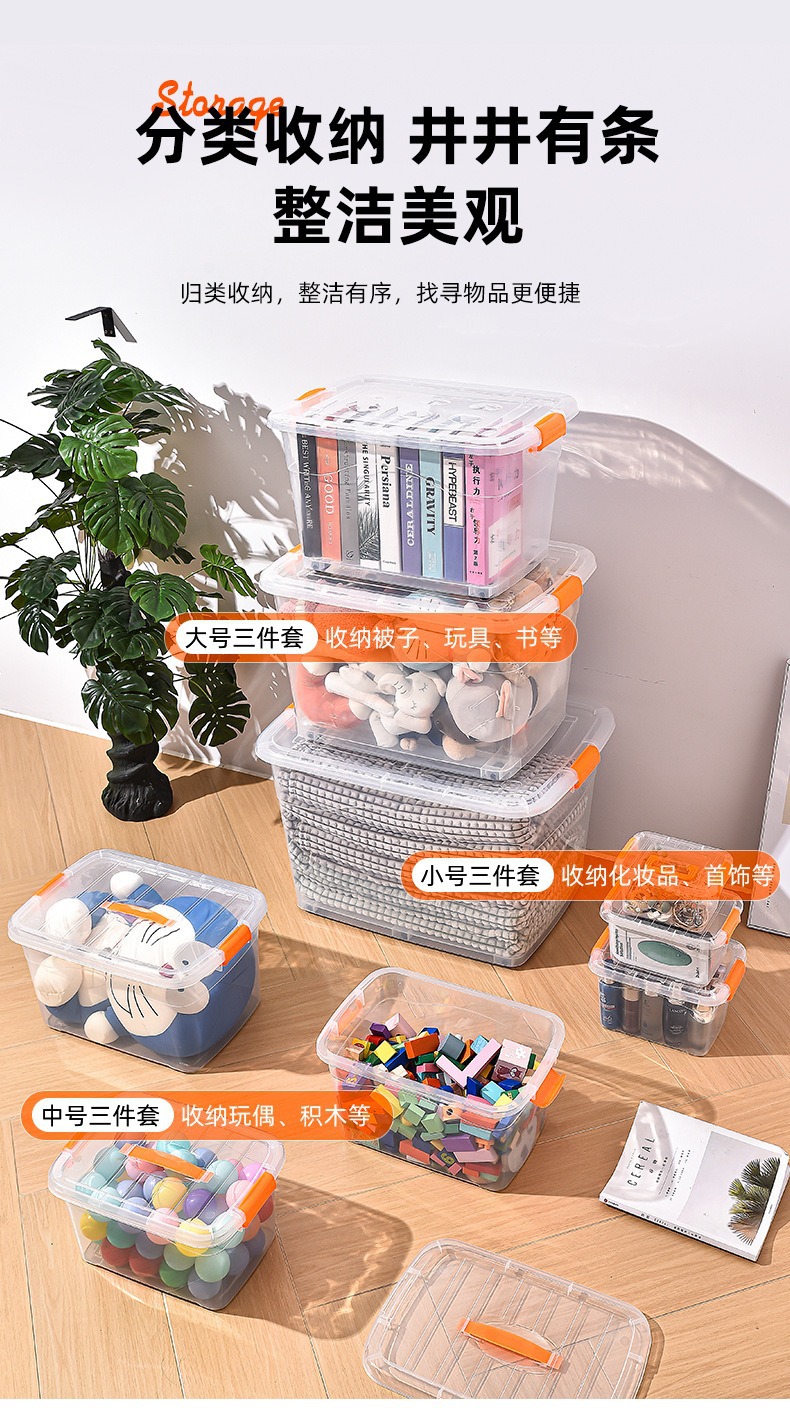 透明收纳箱衣物收纳 加厚整理箱带提手塑料收纳盒玩具衣服整理盒