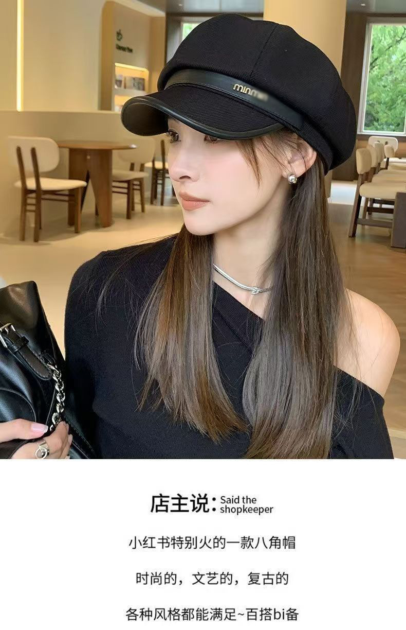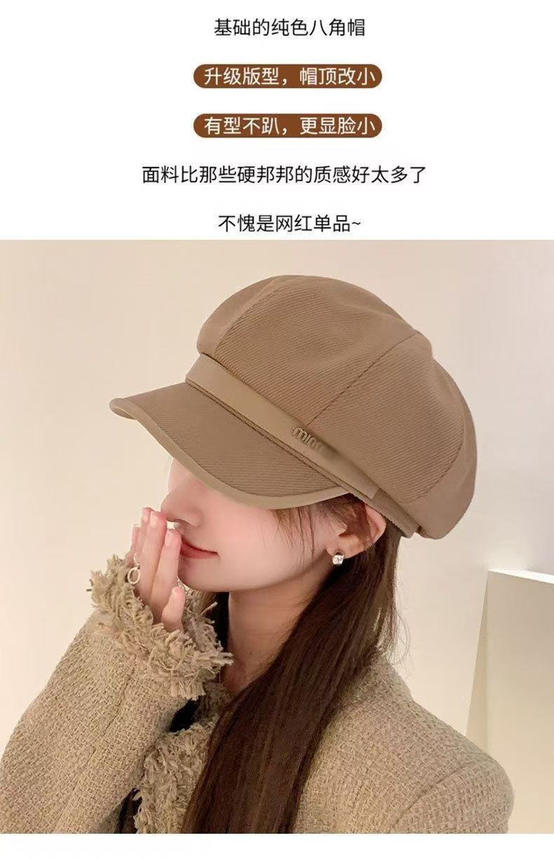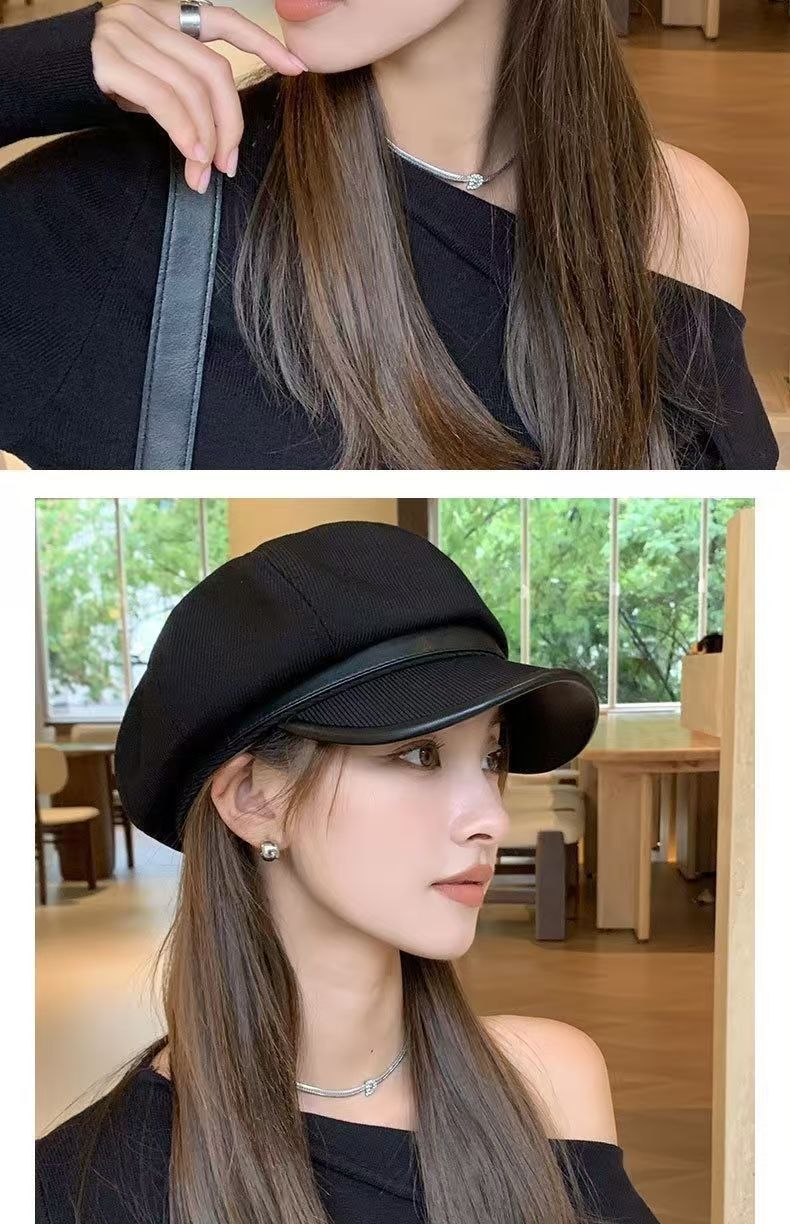 秋冬贝雷鸭舌帽子女英伦百搭韩版百搭画家帽平顶复古显脸小贝雷帽
