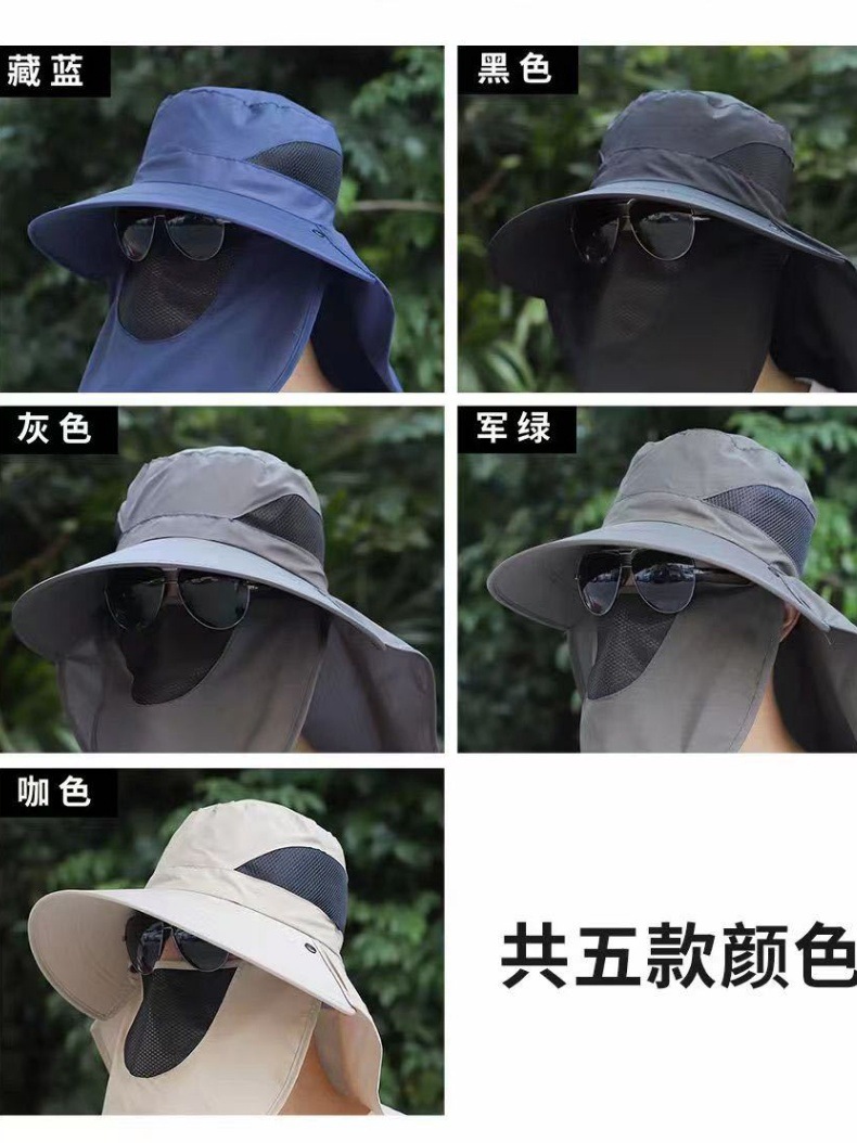 户外登山帽子男士钓鱼遮脸连体大帽檐防晒遮阳帽防紫外采茶渔夫帽