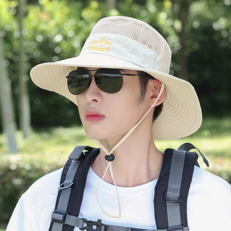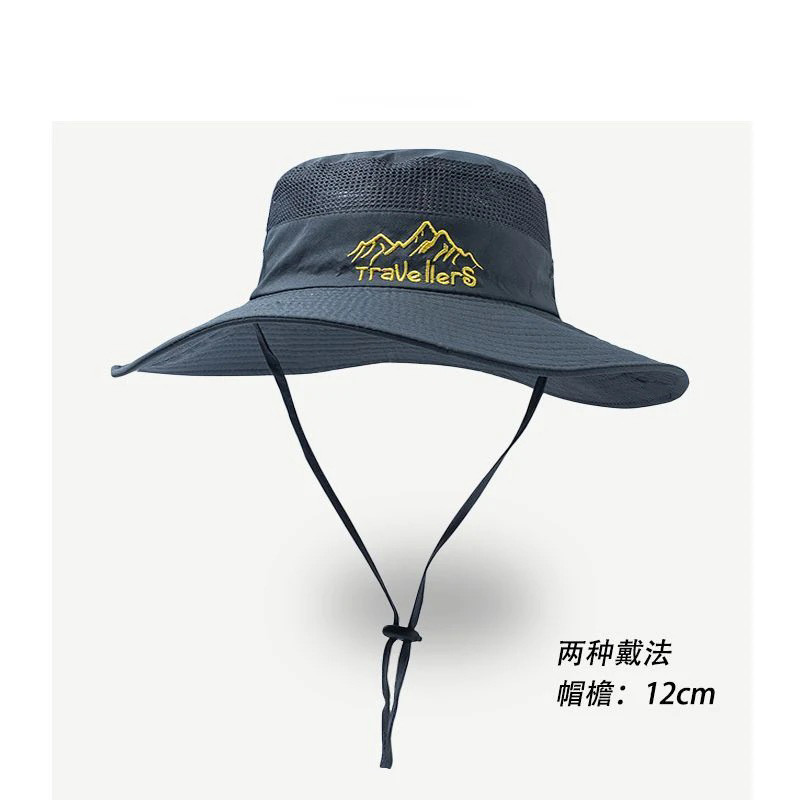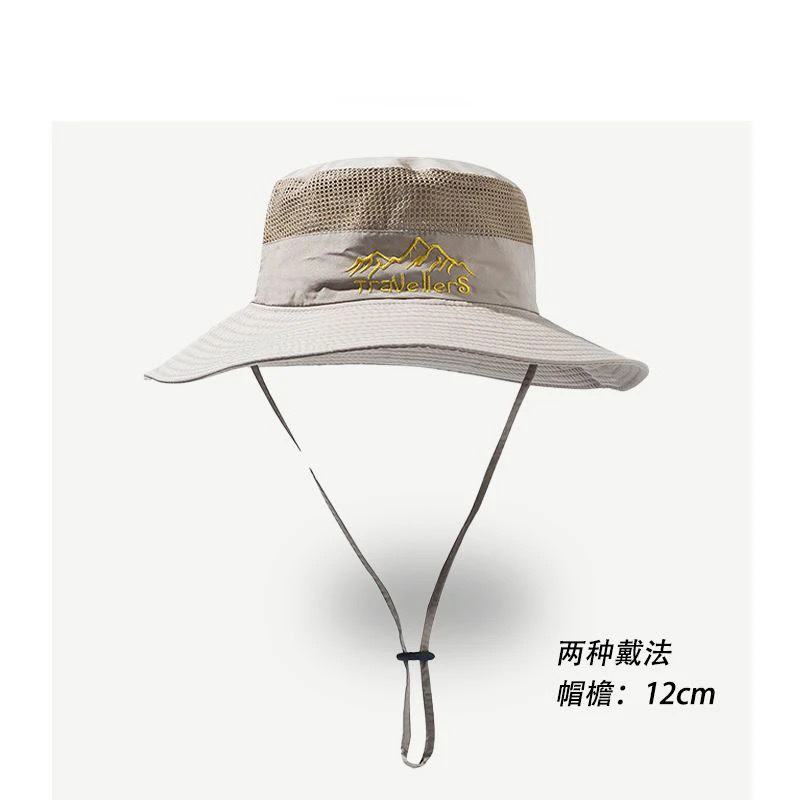 日系潮牌绣山渔夫帽子男女夏季透气防晒户外露营登山钓鱼帽户外