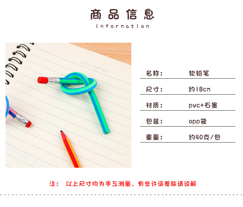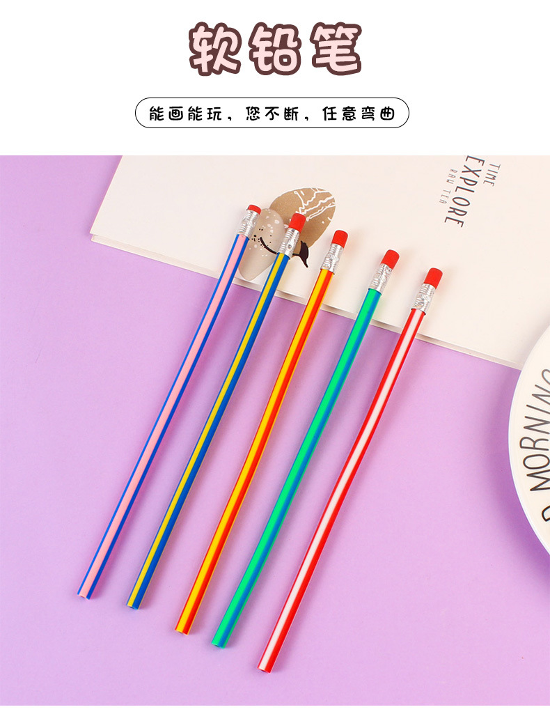 软铅笔折不断可爱铅笔小学生安全文具创意奖品送礼物小礼品弯曲笔