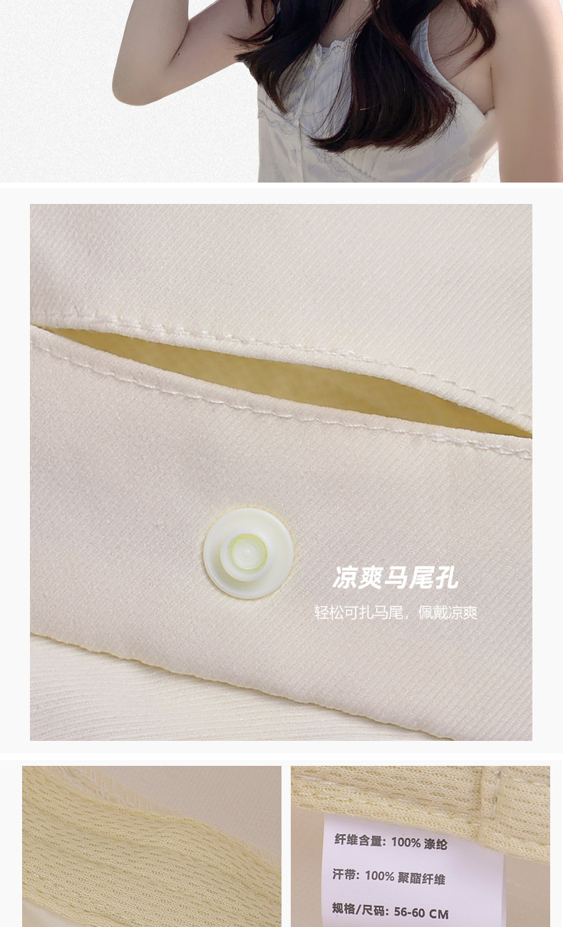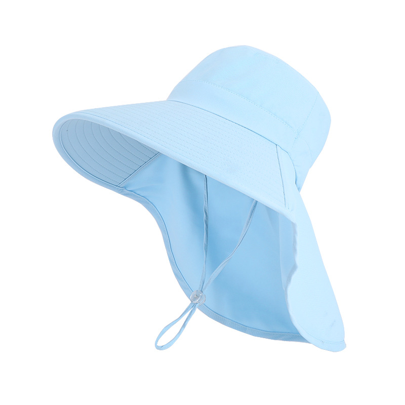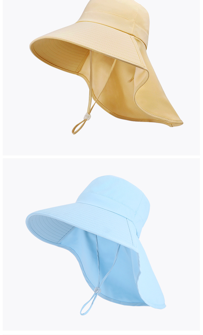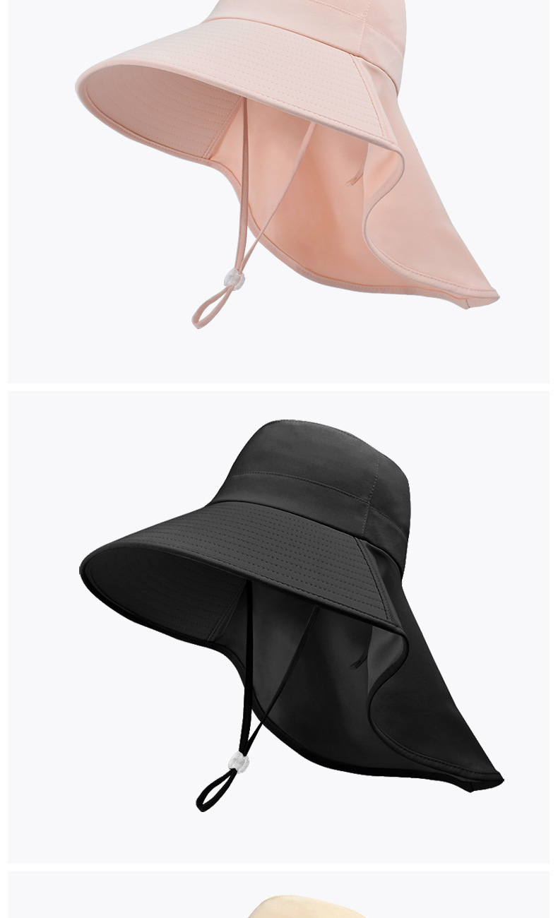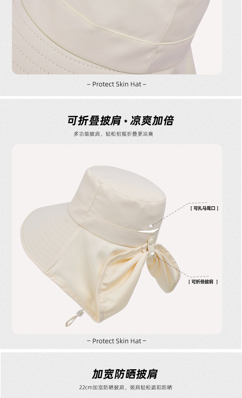 8555夏季户外防晒遮阳帽韩版百搭大帽檐披肩渔夫帽带马尾孔帽子女