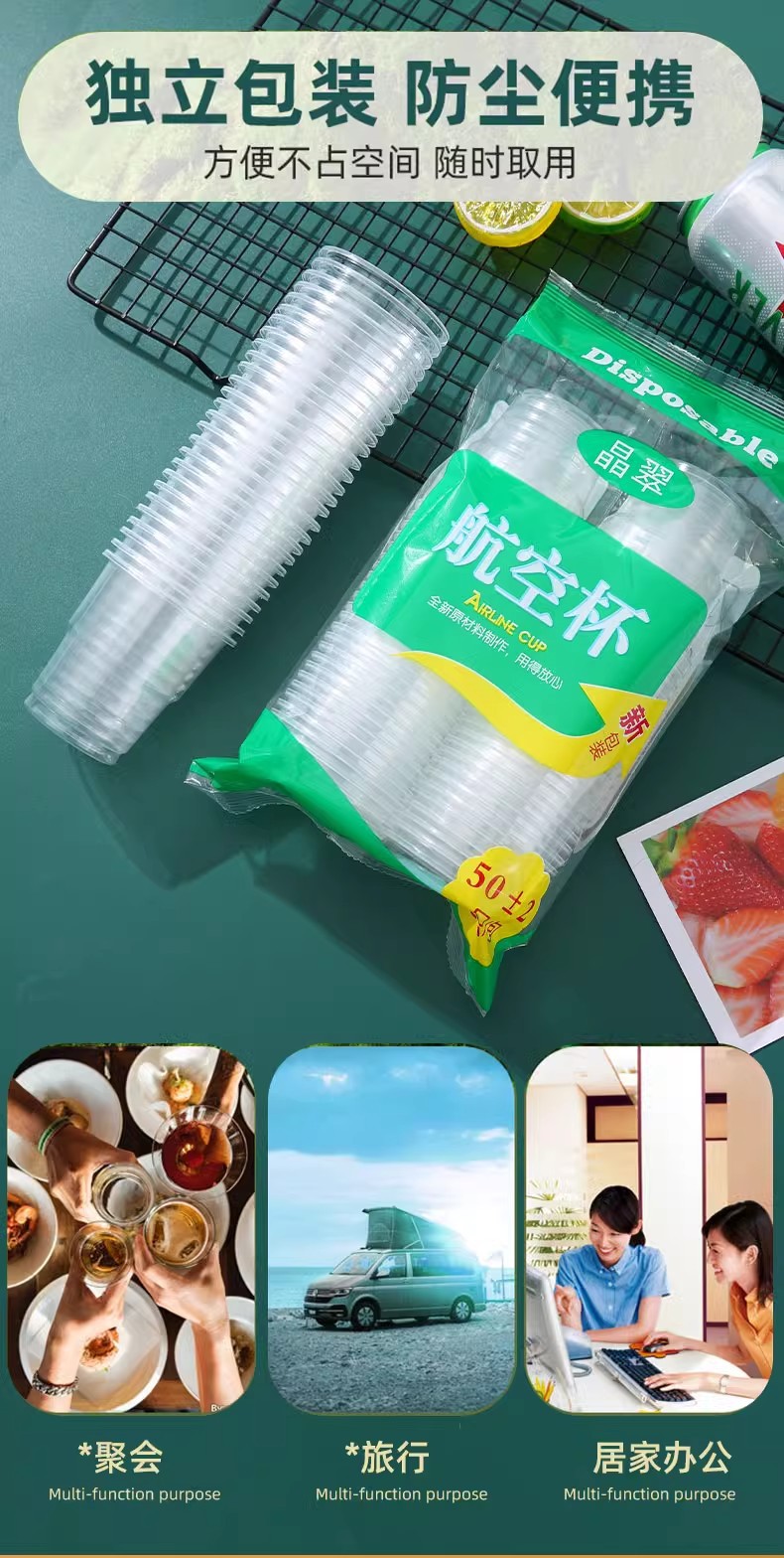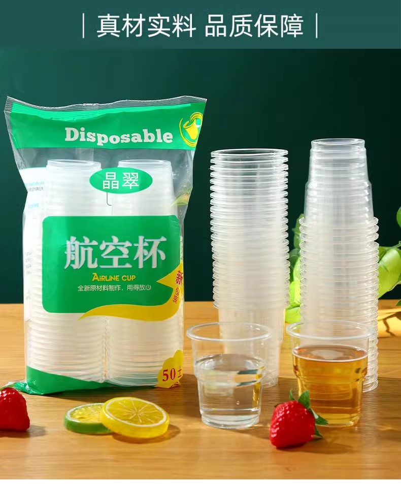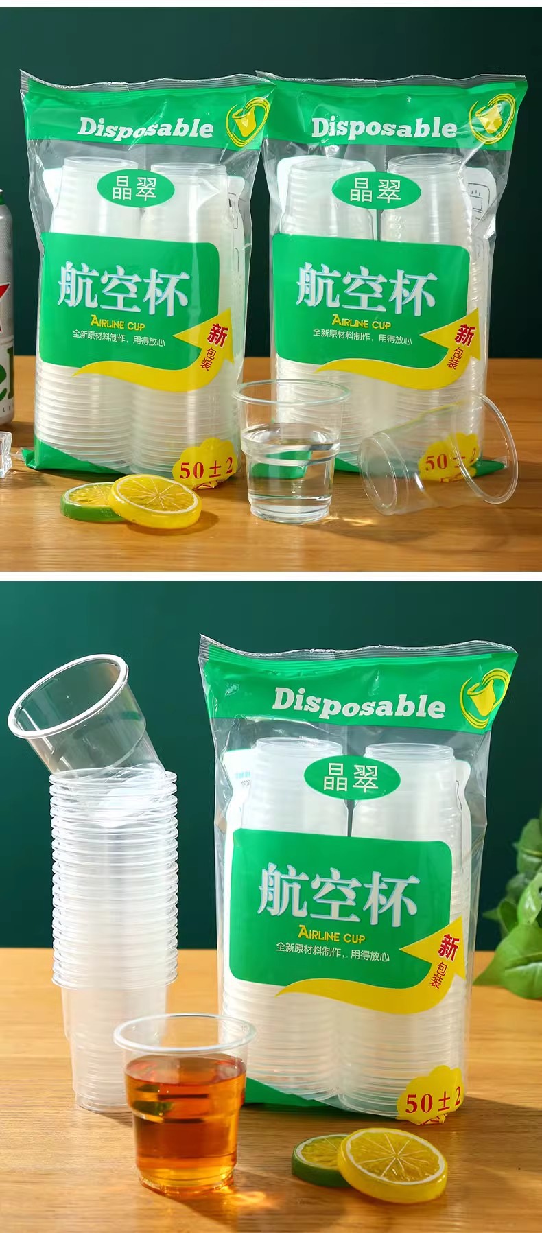 一次性杯子水杯航空杯透明茶杯加厚硬质塑料商家用透明水杯太空杯