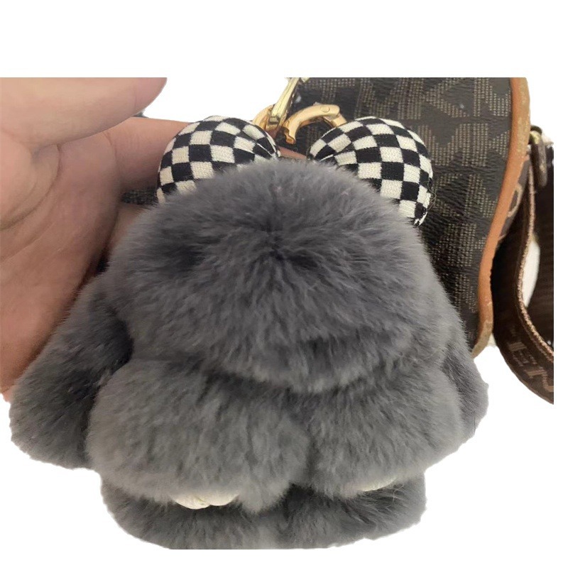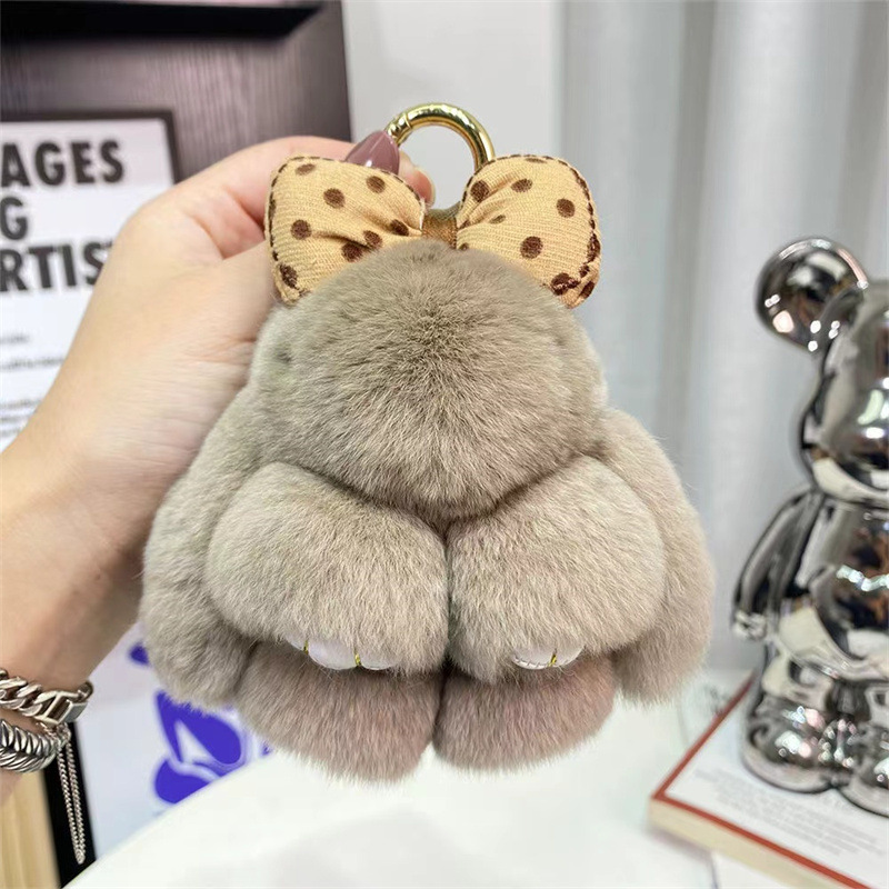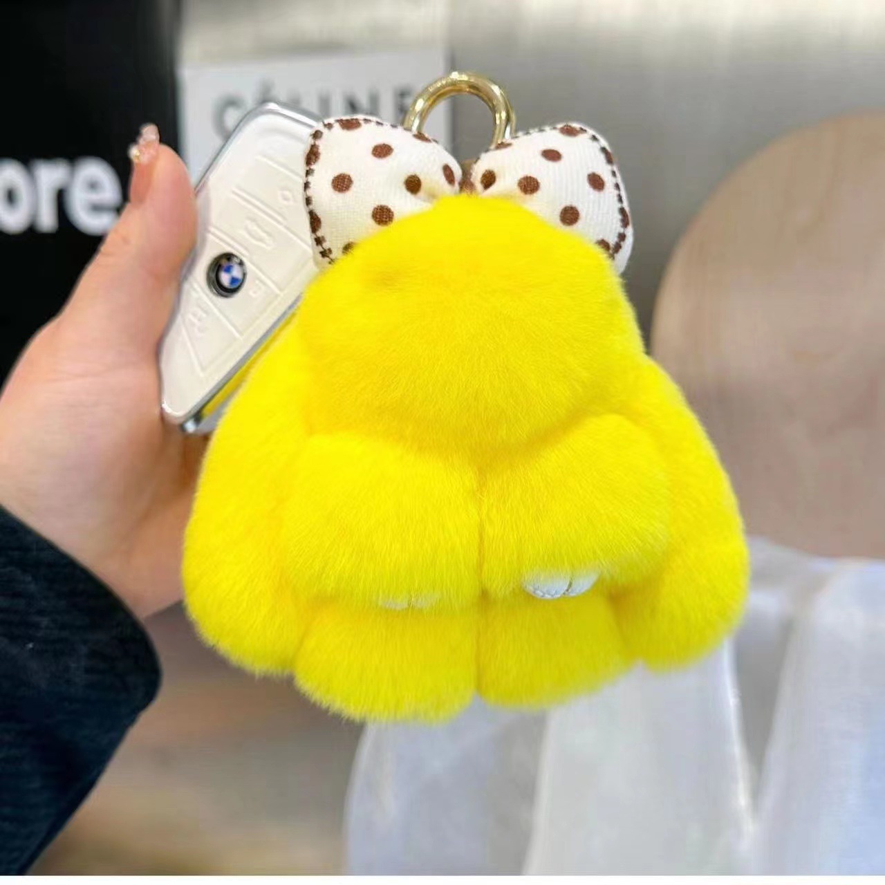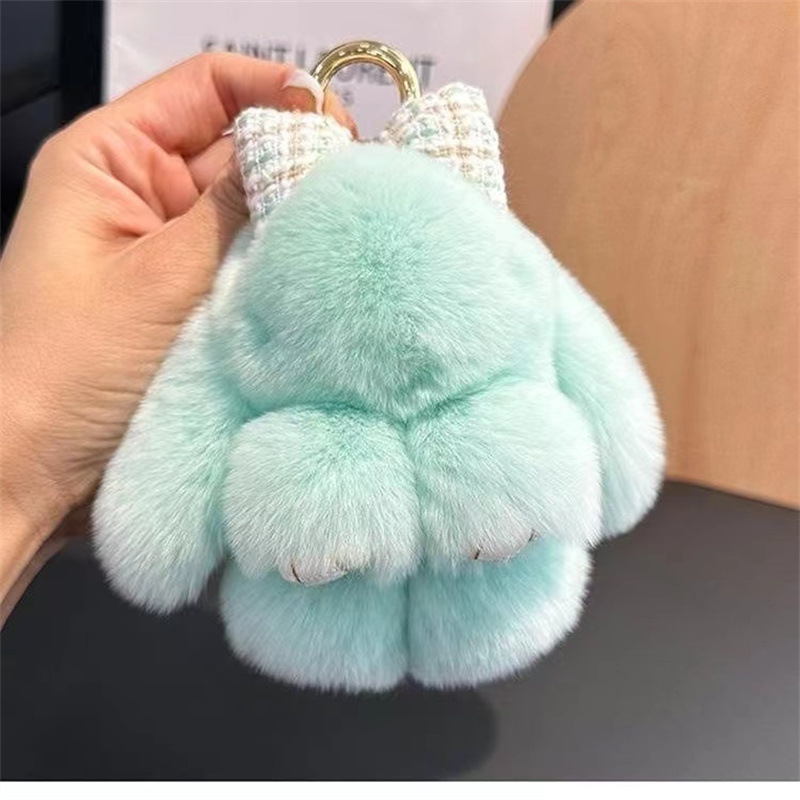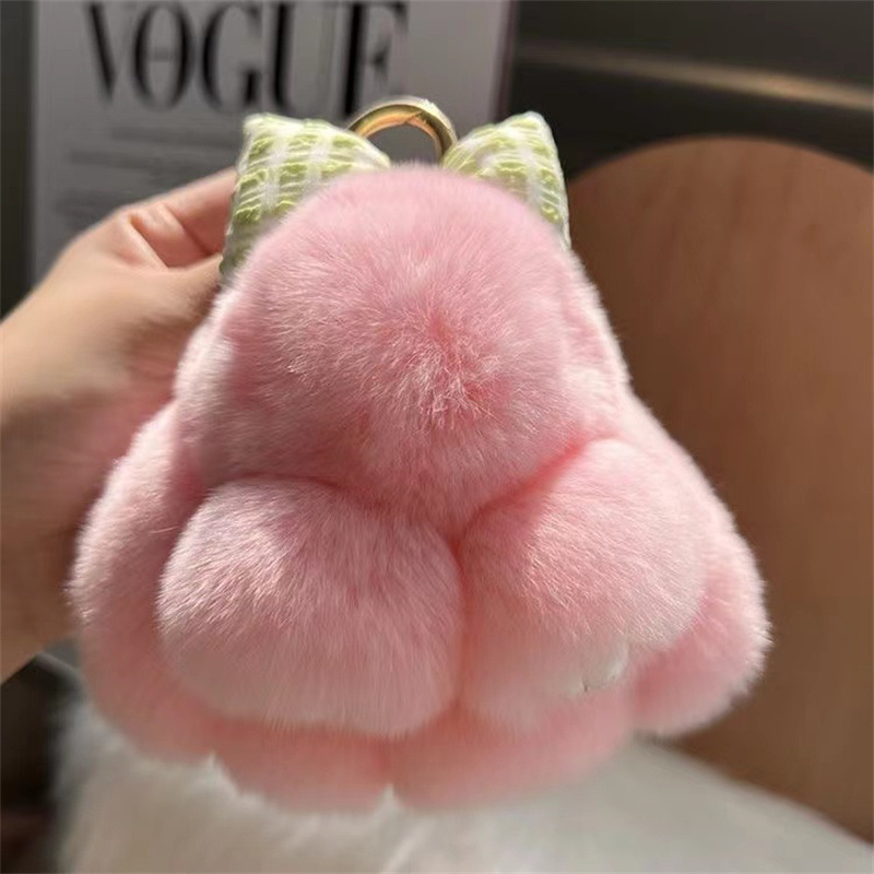 网红diy饰品可爱蝴蝶结装死兔钥匙扣挂件毛绒包包配饰吊坠