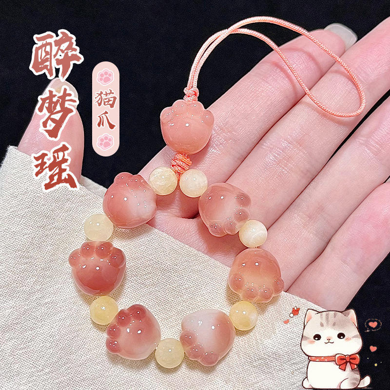 菩提根雕刻猫爪手机链汽车钥匙扣挂绳男女精致手机链饰品装饰挂件
