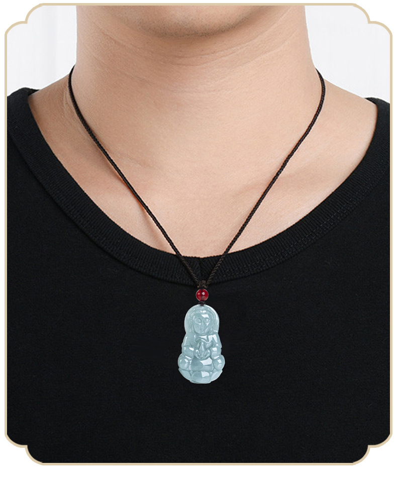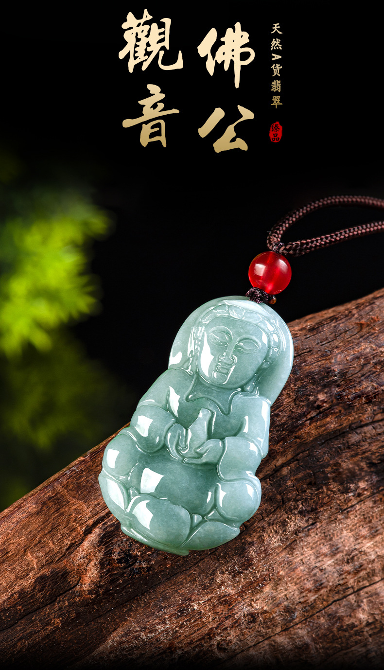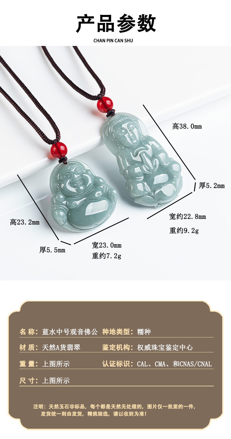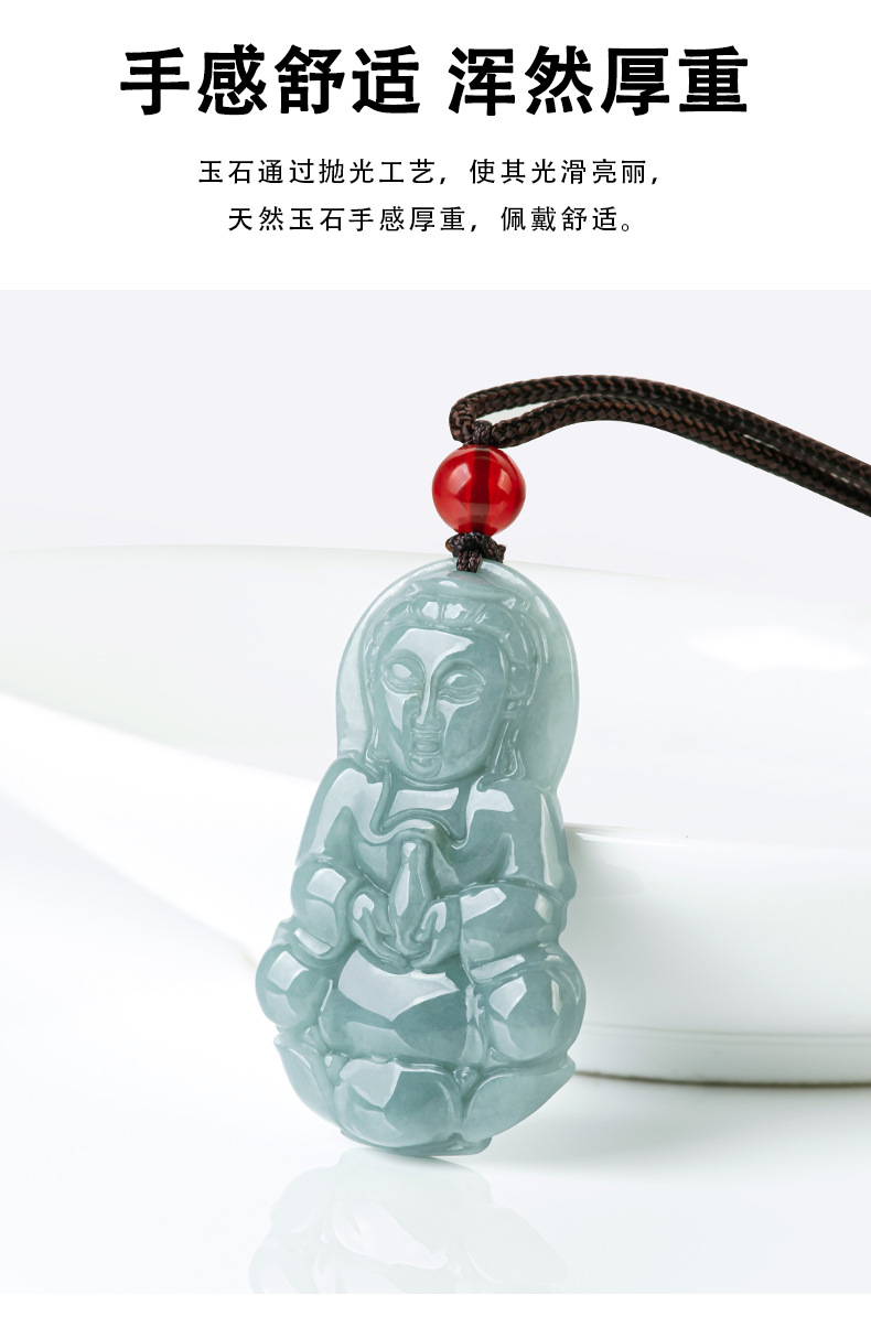 天然A货翡翠蓝水中号观音佛像吊坠挂件饰品男女款冰种玉石挂饰