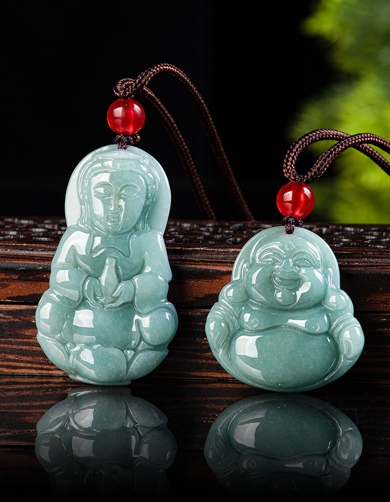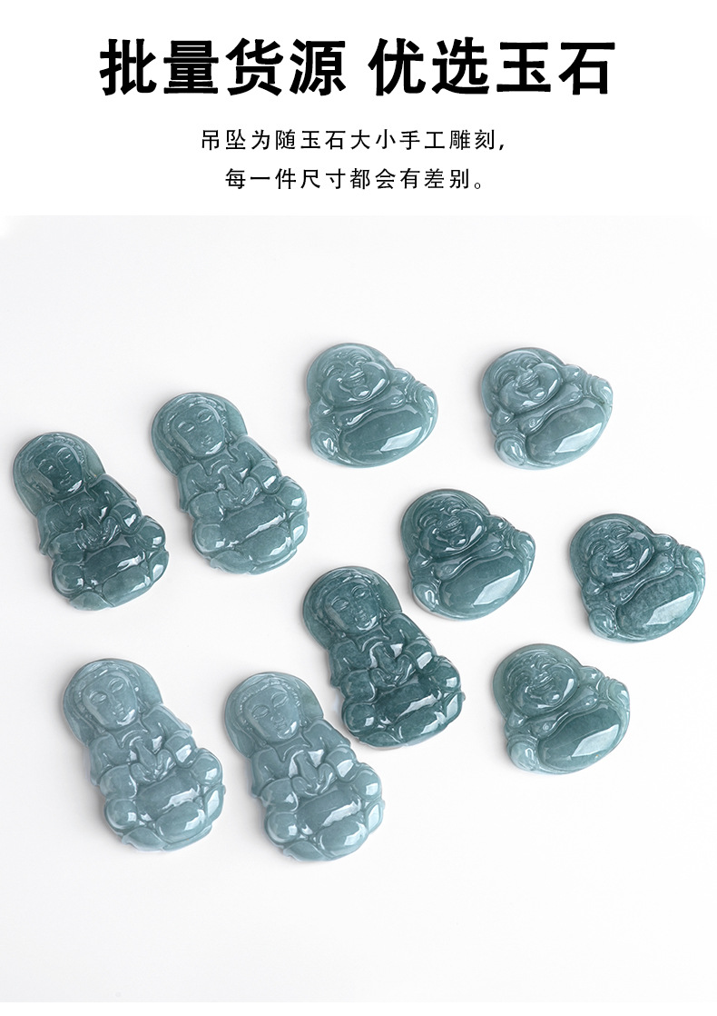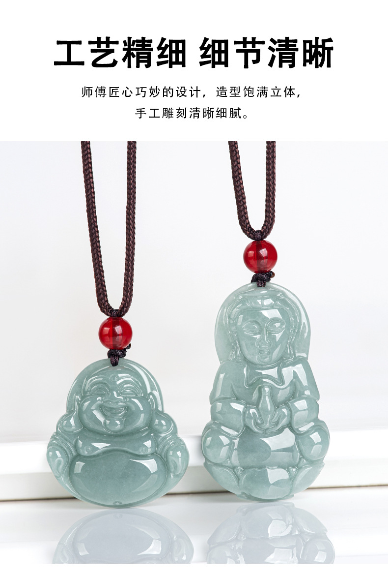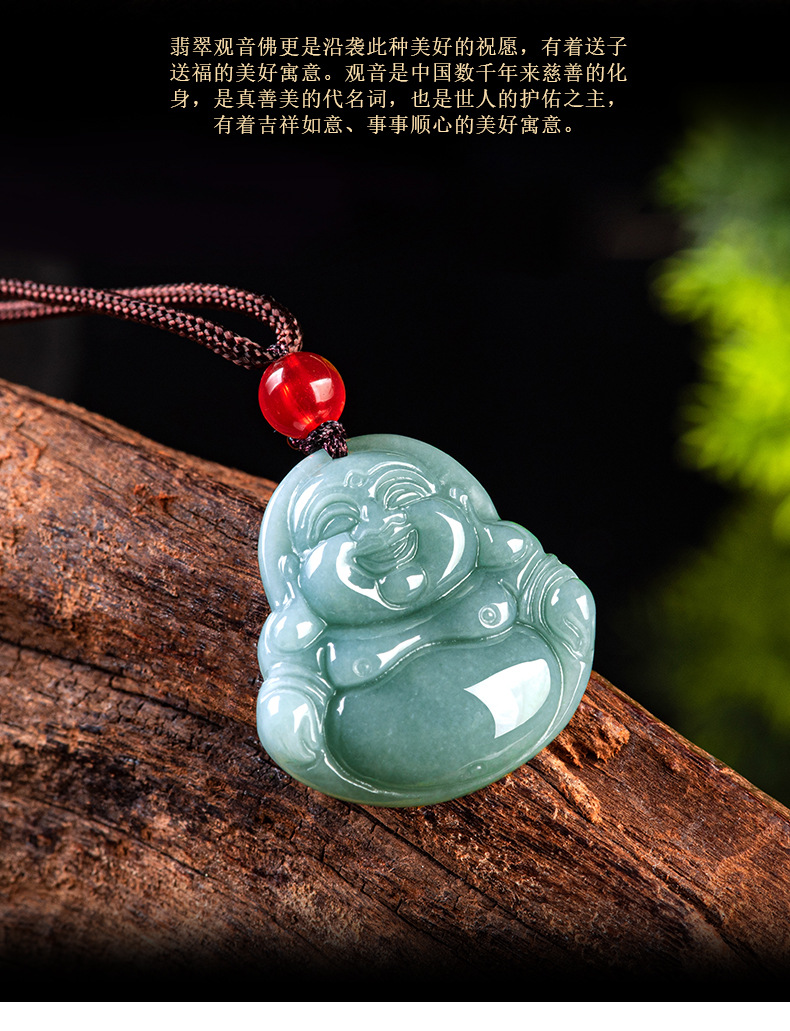 天然A货翡翠蓝水中号观音佛像吊坠挂件饰品男女款冰种玉石挂饰