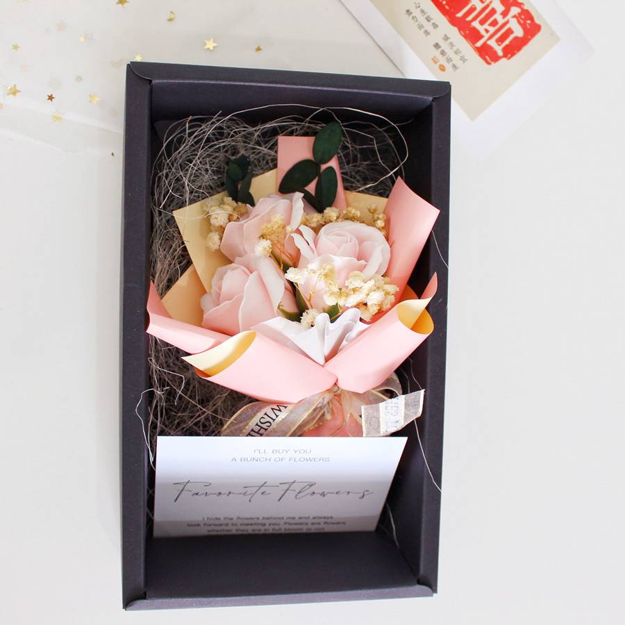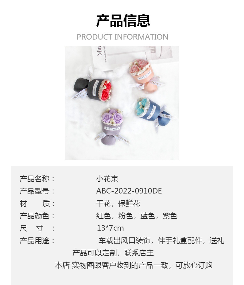 520情人节伴手礼装饰品汽车出风口迷你干花小花束香皂玫瑰礼物