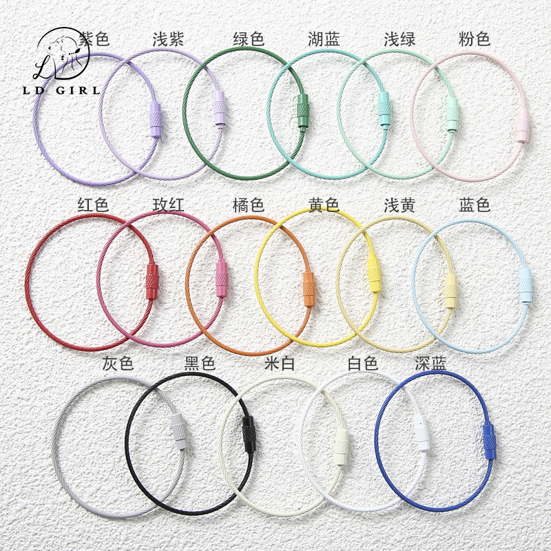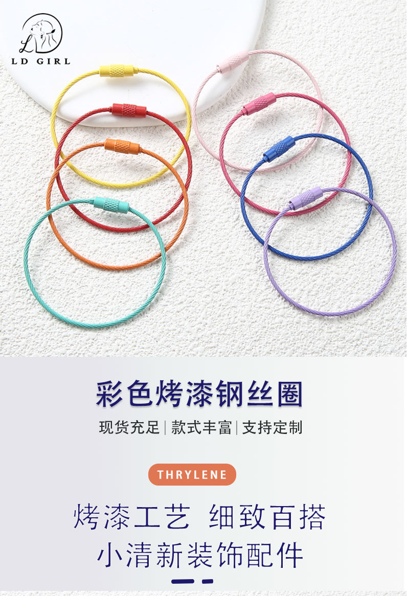 糖果色彩色钢丝绳圈DIY钥匙扣饰品配件少女心ins钥匙圈环吊牌挂扣