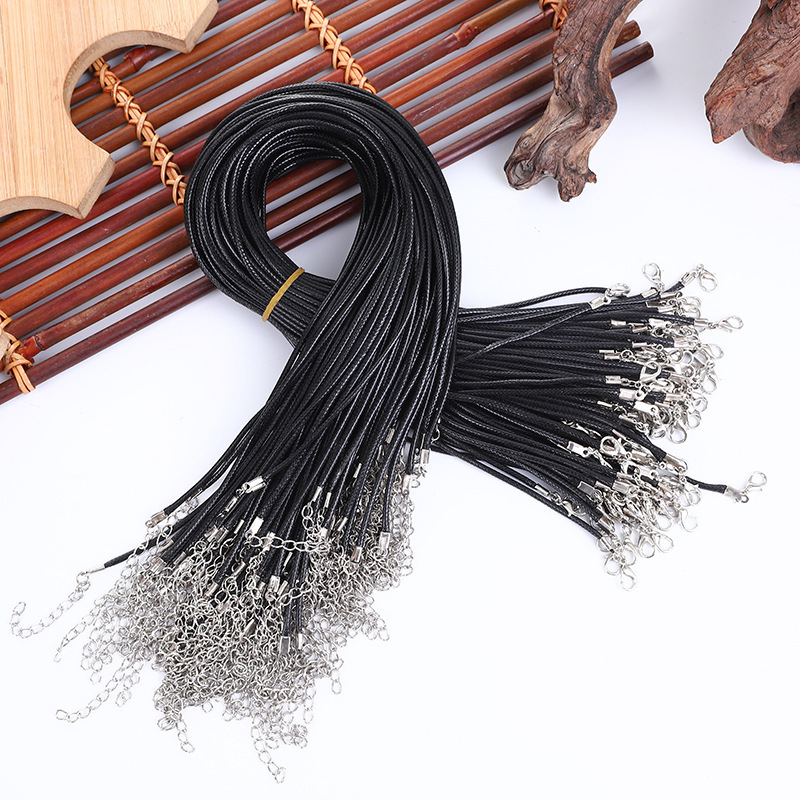 饰品配件diy项链绳龙虾扣皮绳韩国蜡线项链绳黑皮绳吊坠绳蜡皮绳