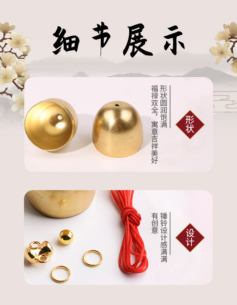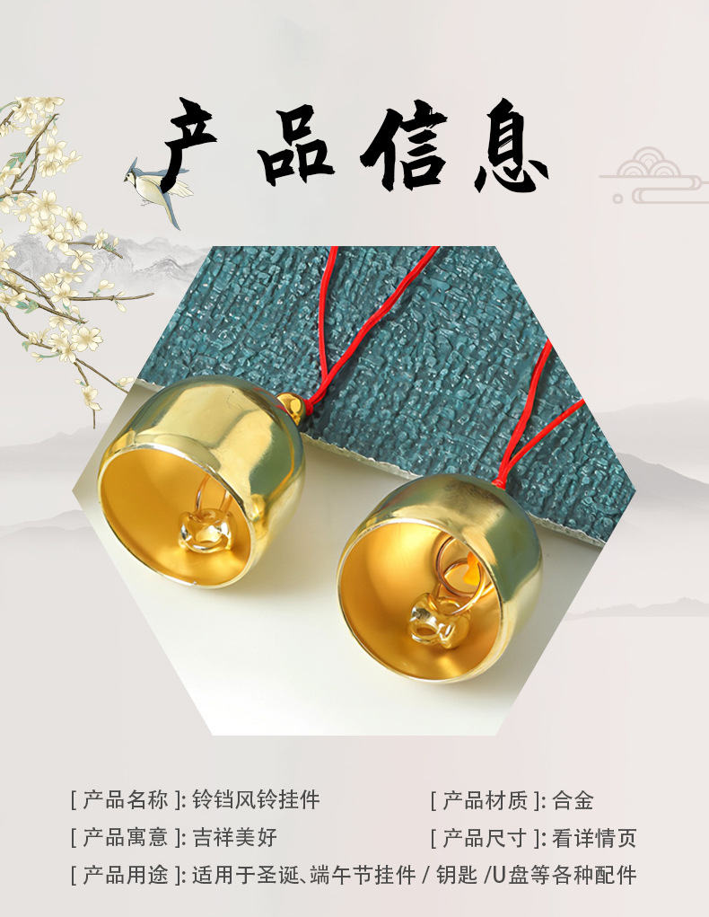 端午节DIY手工挂件铃铛吊坠黄铜合金铃铛风铃挂绳圣诞节饰品配件