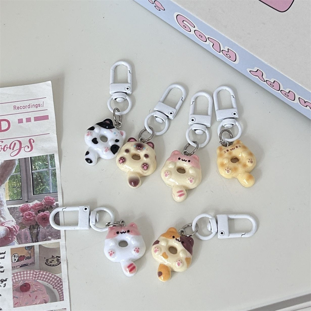 可爱猫咪甜甜圈钥匙扣趣味卡通食玩包包挂件情侣闺蜜礼物配饰饰品