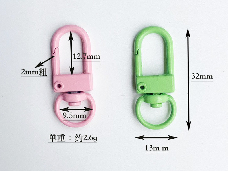 DIY饰品配件锌合金彩色烤漆3分小门扣旋转钥匙扣狗扣箱包玩偶挂扣