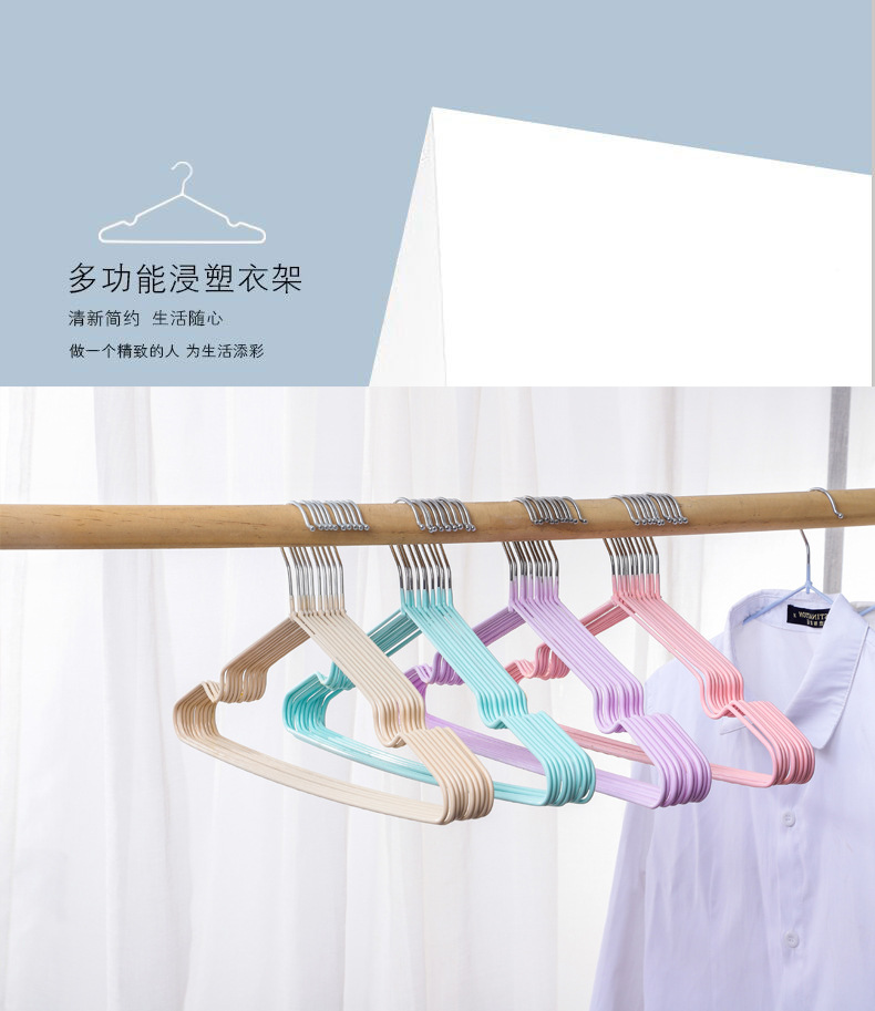 成人衣架批发加粗家用晾晒不锈钢衣架室内防滑无痕浸塑衣服撑子